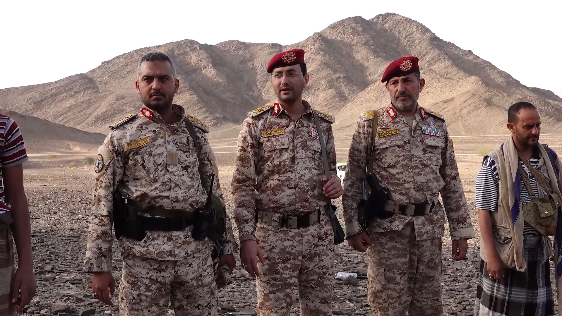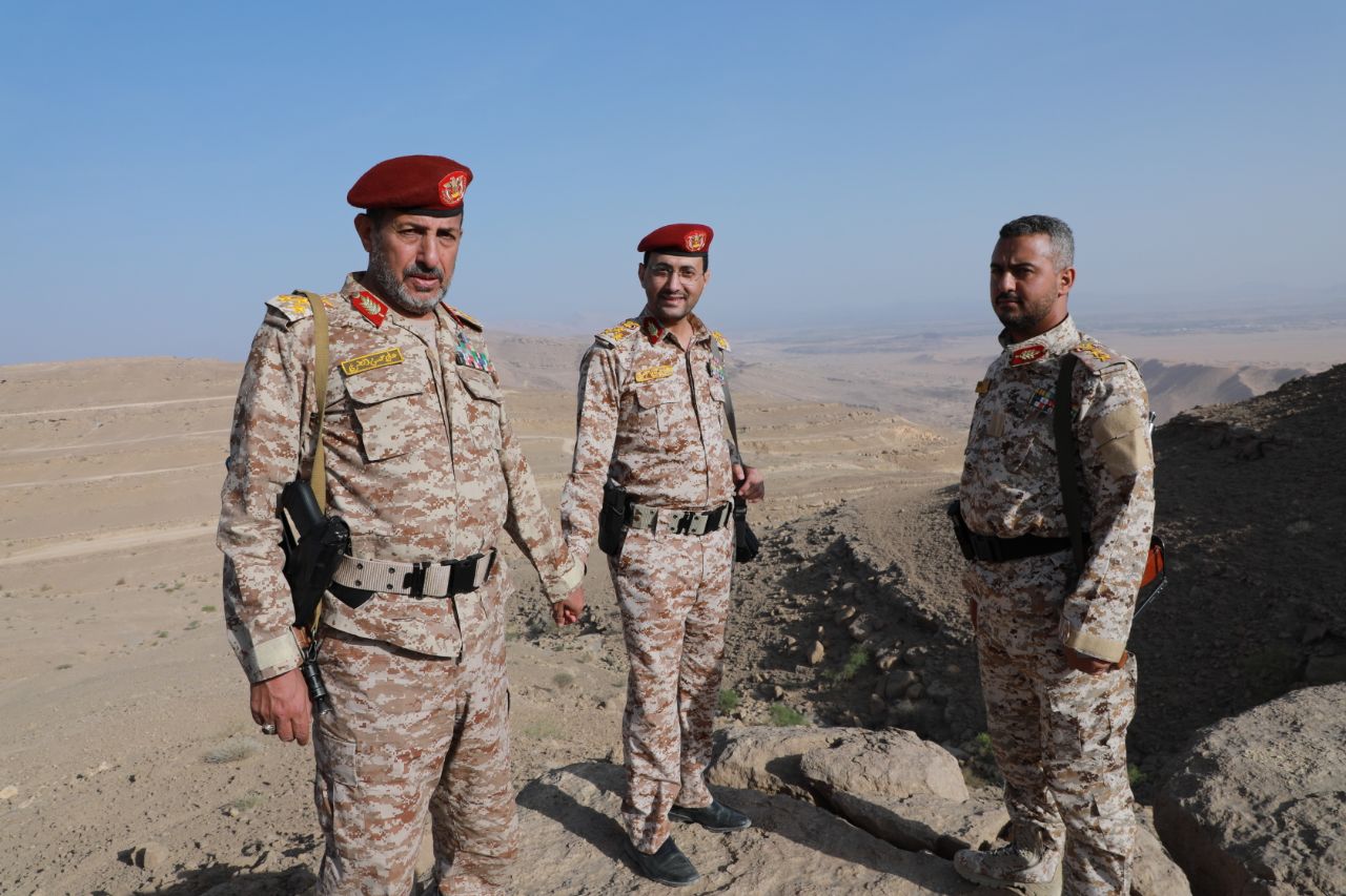 العميد يحيى سريع برفقة عدد من القيادات يتفقدان المجاهدين المرابطين في الخطوط الامامية لجبهة مأرب