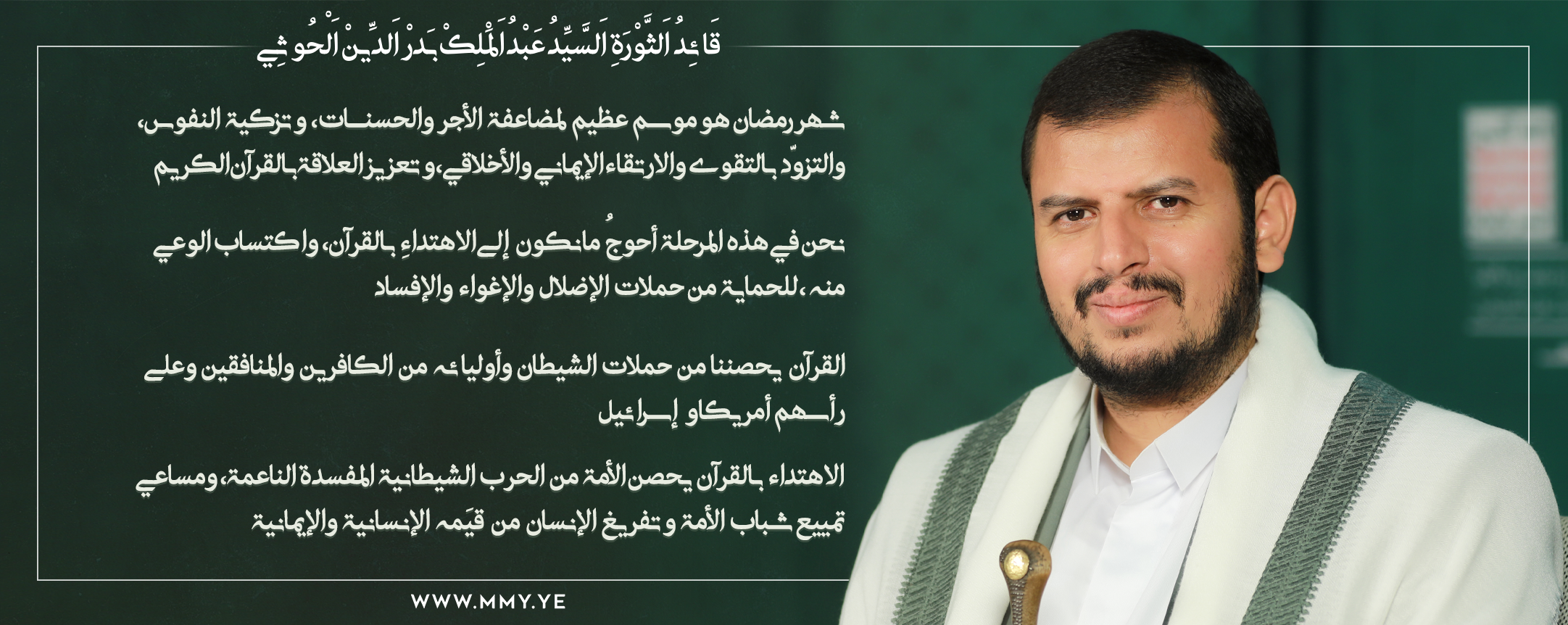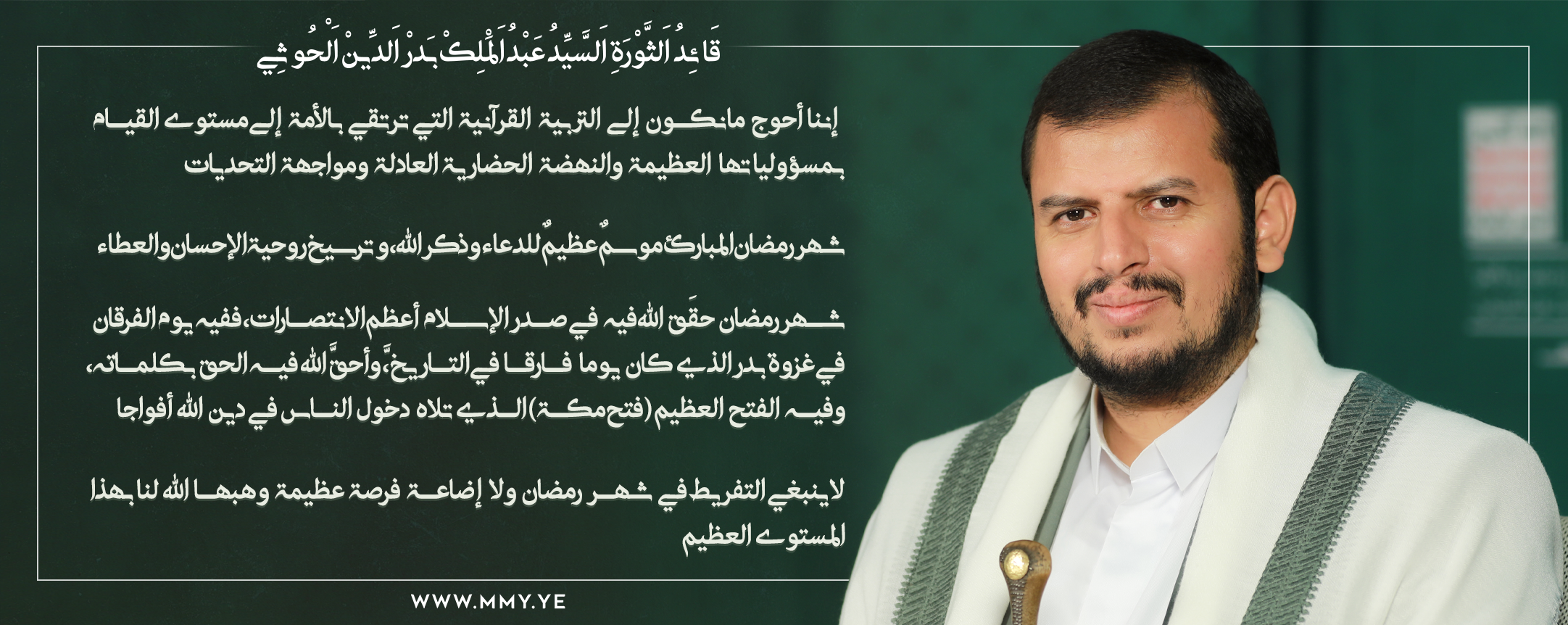 السيد القائد عبدالملك بدر الدين الحوثي يهنئ شعبنا اليمني والأمة الإسلامية بحلول شهر رمضان المبارك