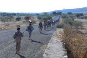 وانطلق المُسّير الذي شاركت فيه الكتيبتان الرابعة والخامسة قوامه ألف من وحدات قوات الدعم والإسناد، من مديرية نهم وصولاً إلى محافظة الجوف، قطع مسافة 100 كيلو متر.