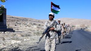 مسير عسكري لوحدات رمزية من قوات الدعم و الإسناد دعما لعملية طوفان الأقصى “من نهم وصولاً إلى محافظة الجوف”