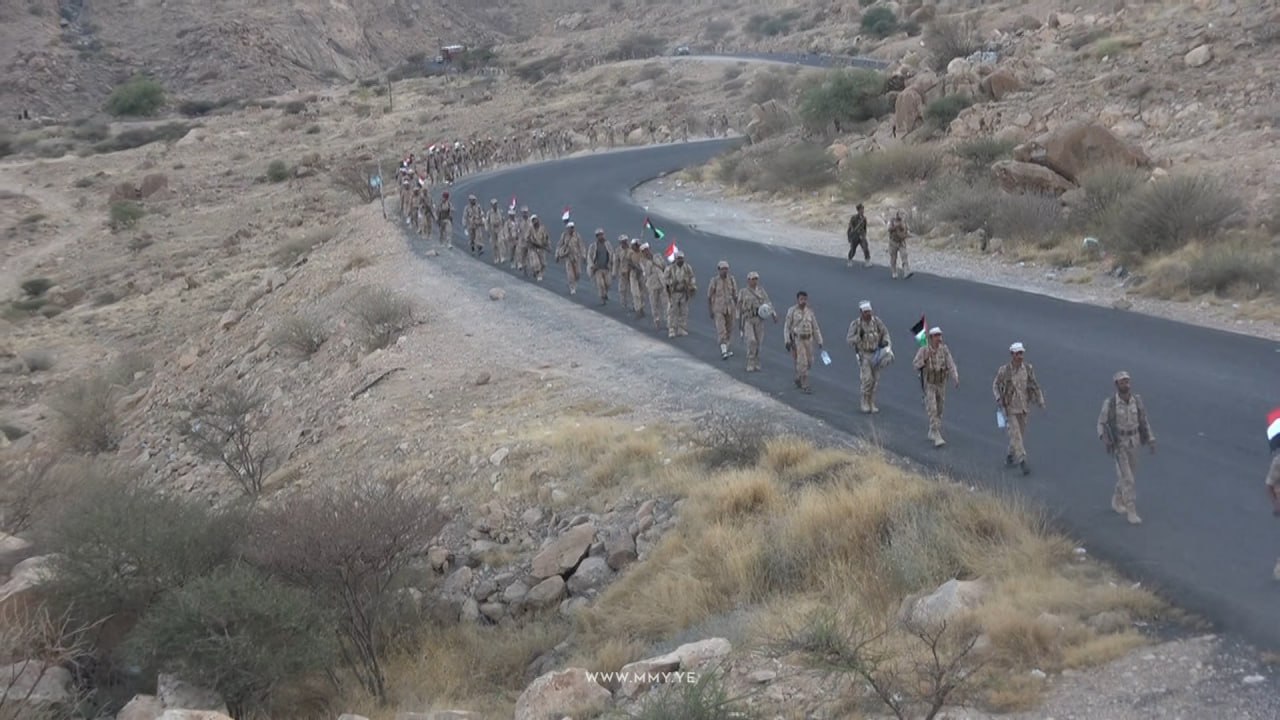 وانطلق المُسّير الذي شاركت فيه الكتيبتان الرابعة والخامسة قوامه ألف من وحدات قوات الدعم والإسناد، من مديرية نهم وصولاً إلى محافظة الجوف، قطع مسافة 100 كيلو متر.