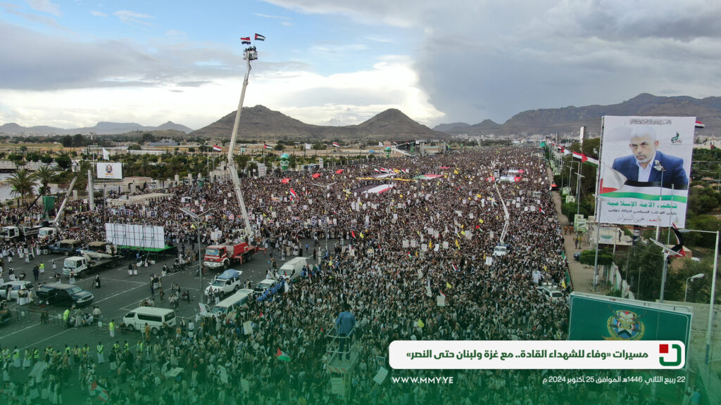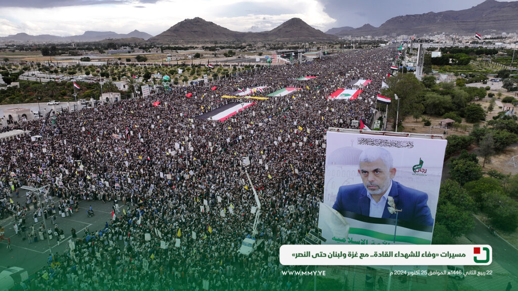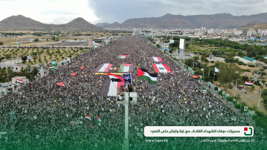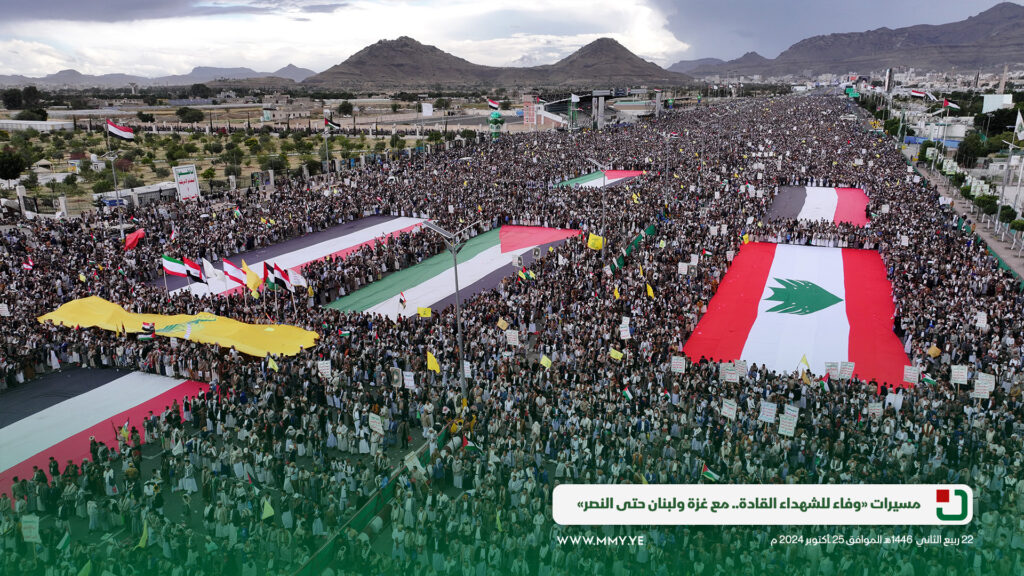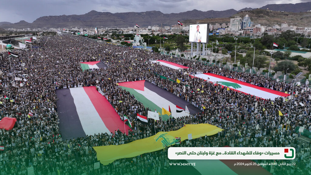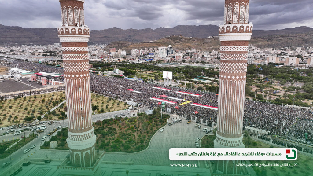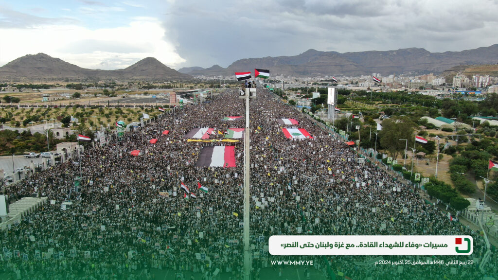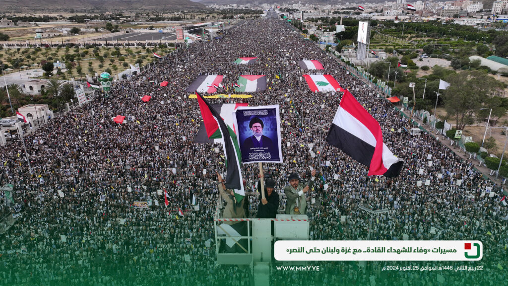 عهود مليونية على المضي في درب الشهداء القادة وعزائم يمنية على مواصلة الطريق إلى القدس مهما تكن التضحيات.. مسيرات “وفاء للشهداء القادة.. مع غزة ولبنان حتى النصر” في العاصمة صنعاء 25-10-2024م