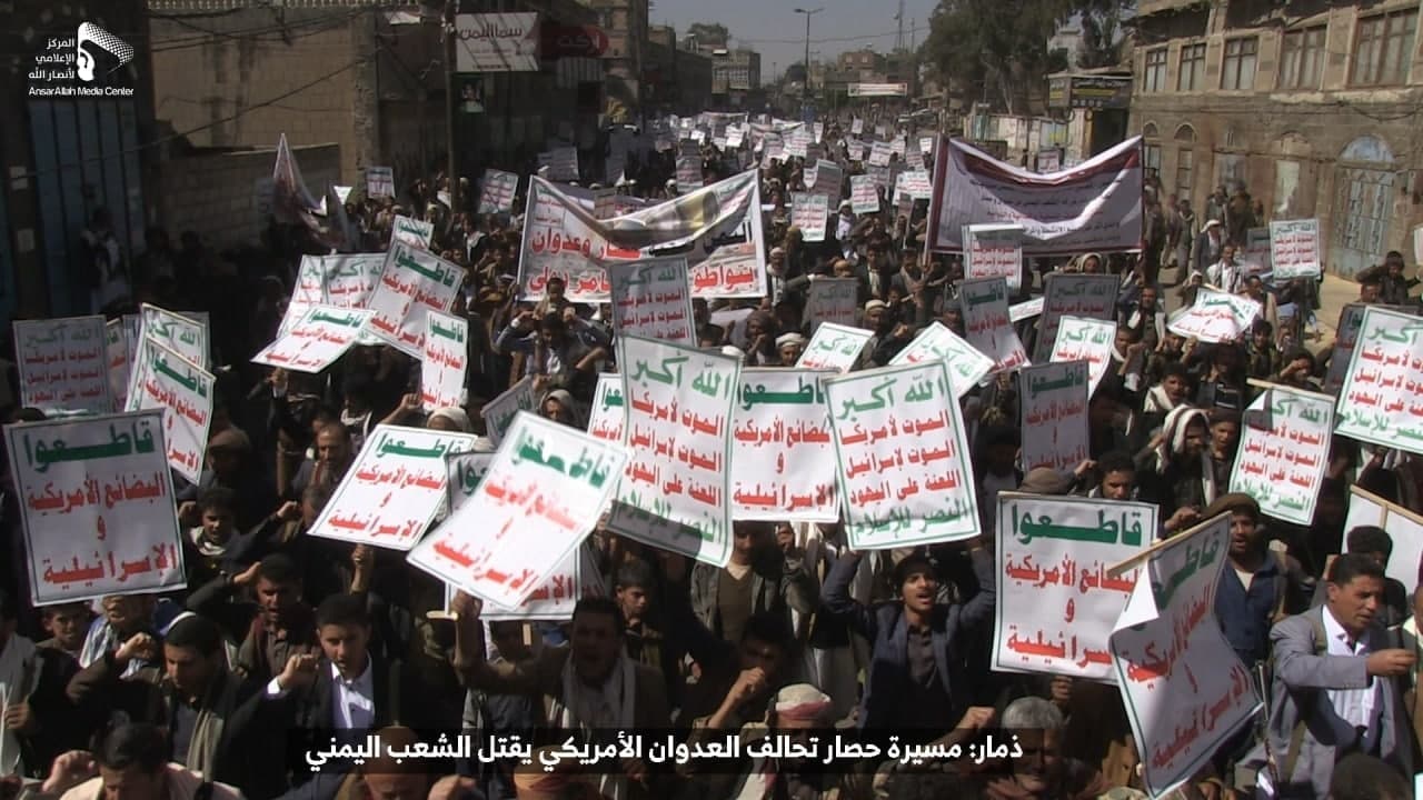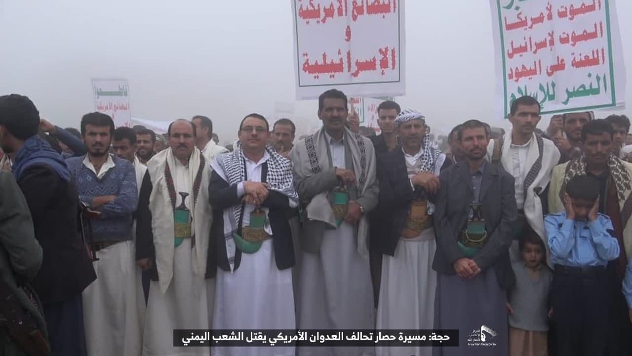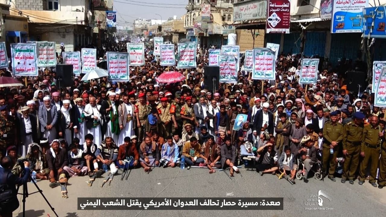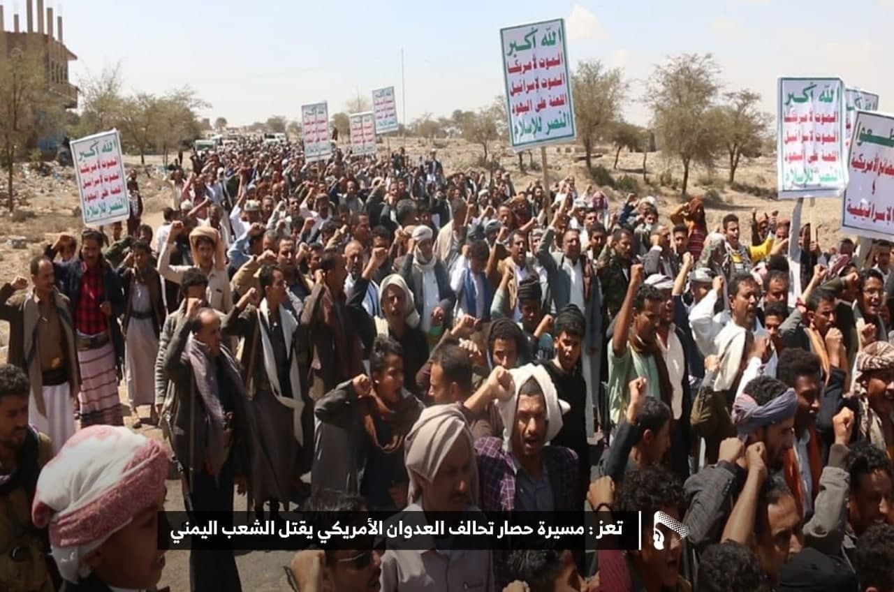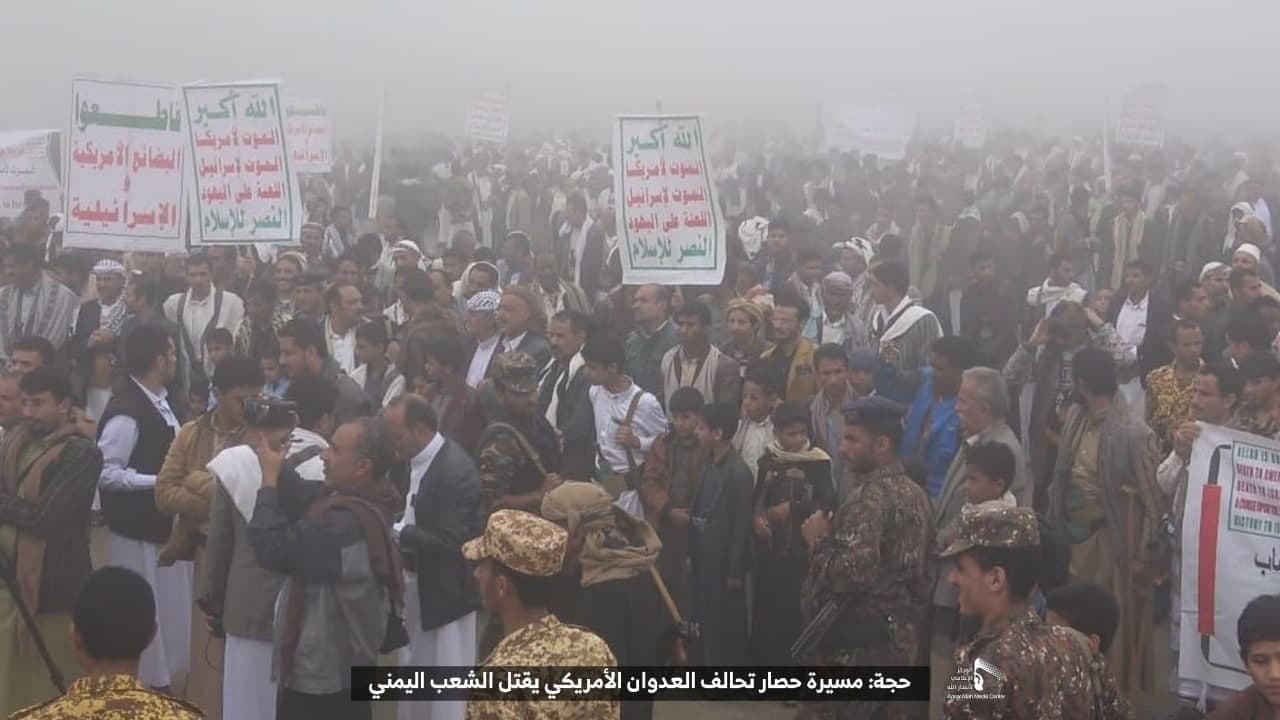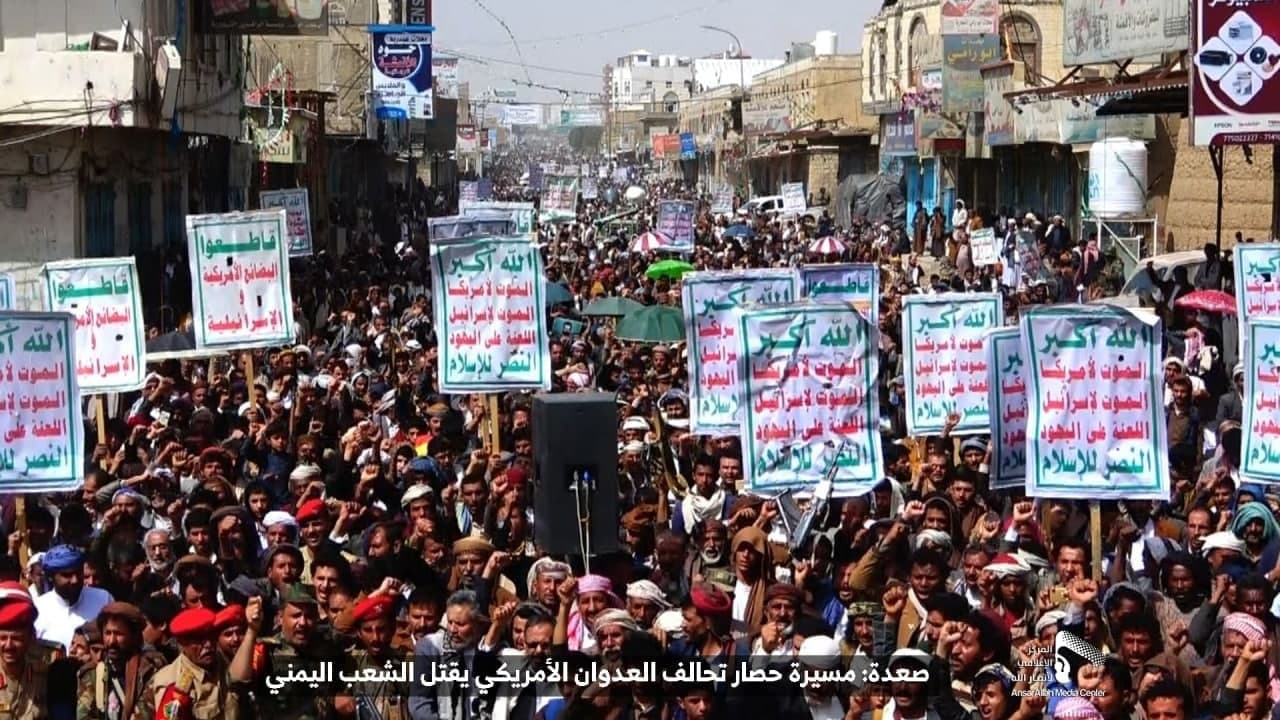 حيث شهدت العاصمة صنعاء عصر اليوم الجمعة: مسيرات غضب جماهيرية حاشدة تنديدا بحصار التحالف الأمريكي بحق الشعب اليمني، ورفضاً للعدوان والحصـار الأمريكي بحق الشعب اليمني وتأكيداً على حق الشعب اليمني في الدفاع عن نفسه وسيادته في وجه العربدة والاستكبار الأمريكي وأدواته
