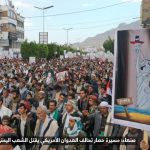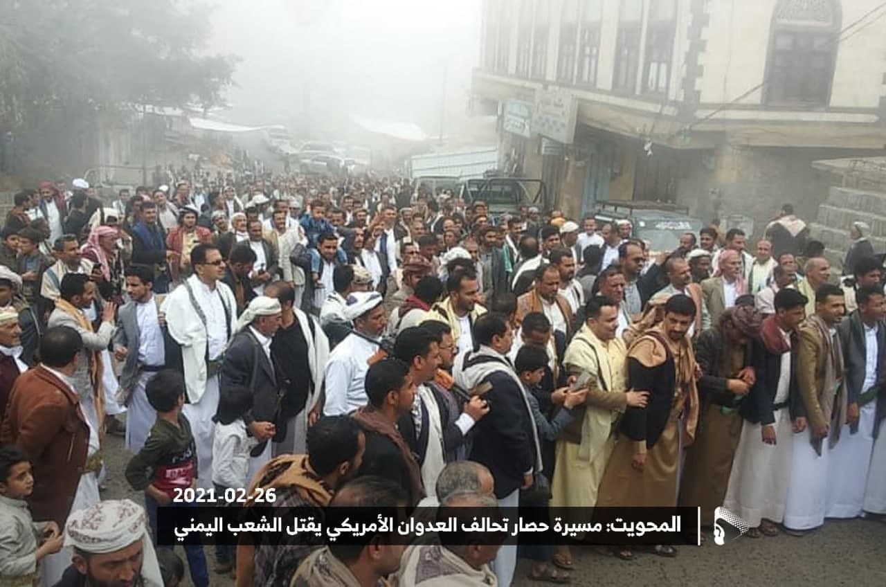 وأشارت الحشود الغفيرة إلى أن الحصار فضح ما تدعيه أمريكا وعرى تشدق الأمم المتحدة بالإنسانية.. مؤكداً انه لن يفك الحصار ويوقف العدوان إلا مواصلة التصدي للعدوان وتحرير مأرب وكل شبر من أرض الوطن من دنس الغزاة والمحتلين.