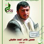 Actor حسين عامر أحمد عامر معيض Filmography الشهيد المجاهد: حسين عامر أحمد عامر معيض – أبو صالح المحافظة: صعدة المديرية: ساقين – الشعف معركة النفس الطويل رقم الحافظة: 123036 FILMOGRAPHY icon الشهيد المجاهد حسين عامر أحمد عامر معيض “أبو صالح” 03/03/2017 22/11/2021