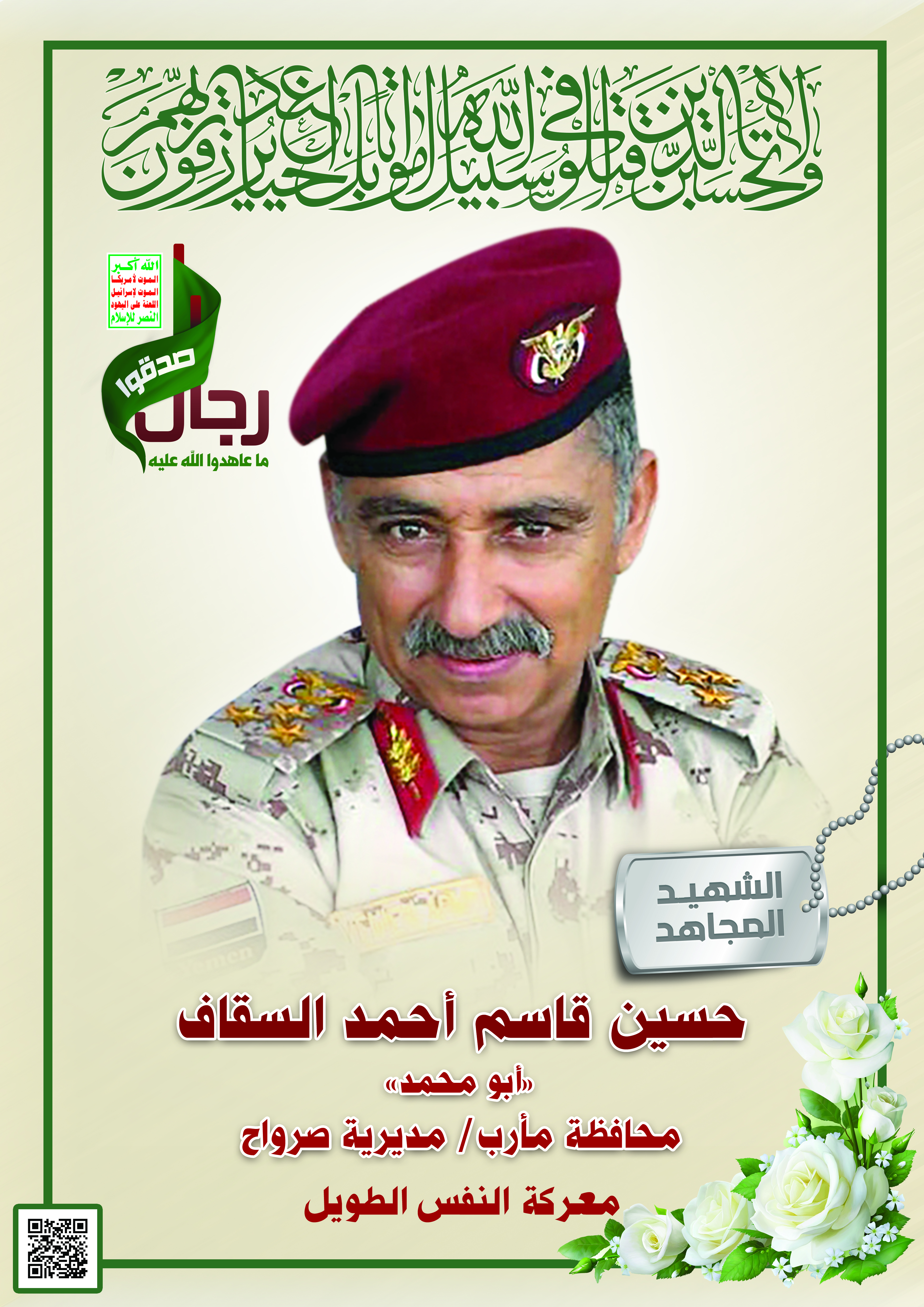 Actor حسين قاسم أحمد السقاف Filmography الشهيد المجاهد: حسين قاسم أحمد السقاف – أبو محمد المحافظة: مأرب المديرية: صرواح – حباب معركة النفس الطويل رقم الحافظة: 123039