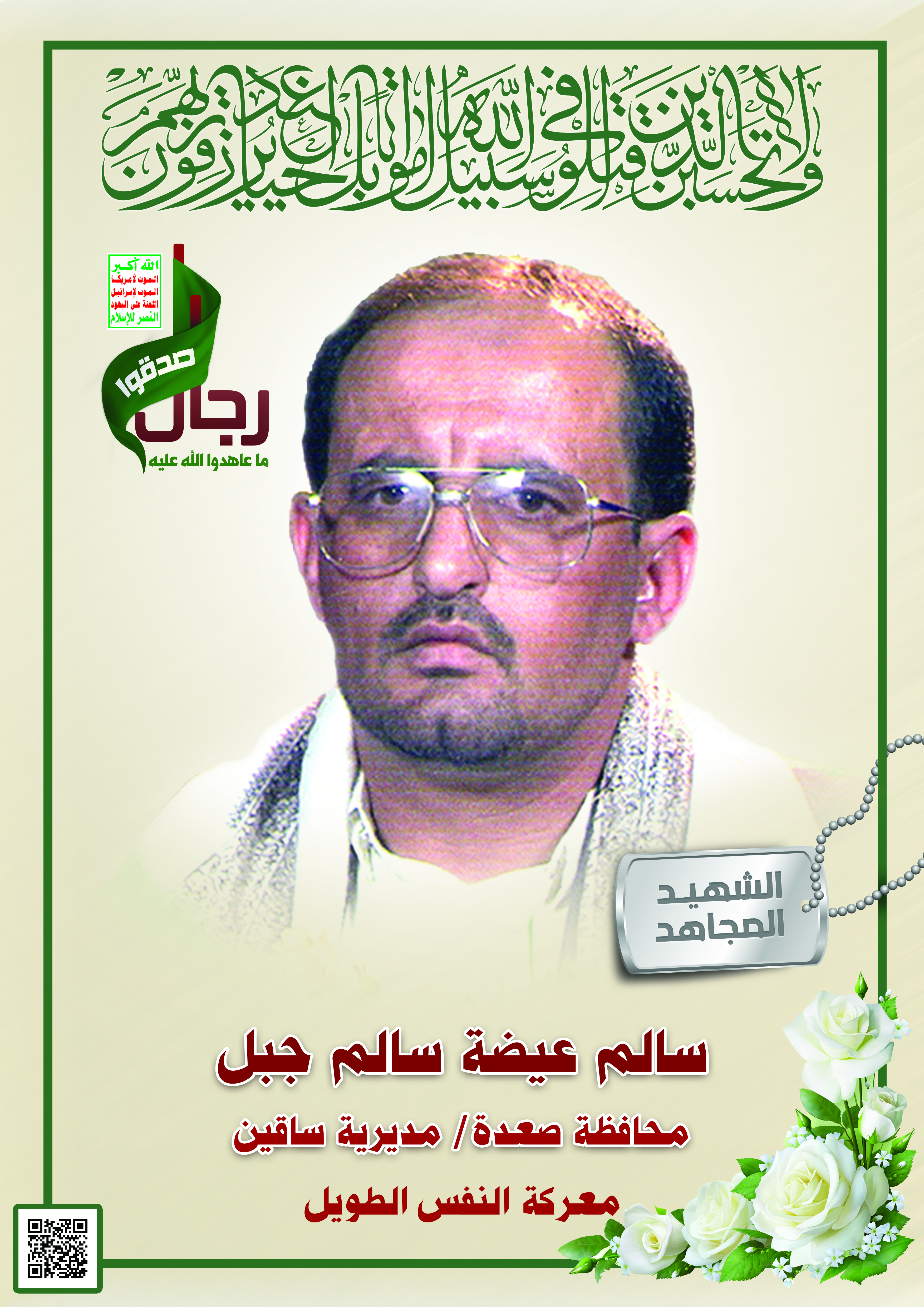 Actor سالم عيضة سالم جبل Filmography الشهيد المجاهد: سالم عيضة سالم جبل – المحافظة: صعدة المديرية: ساقين – بني بحر معركة النفس الطويل رقم الحافظة: 123057