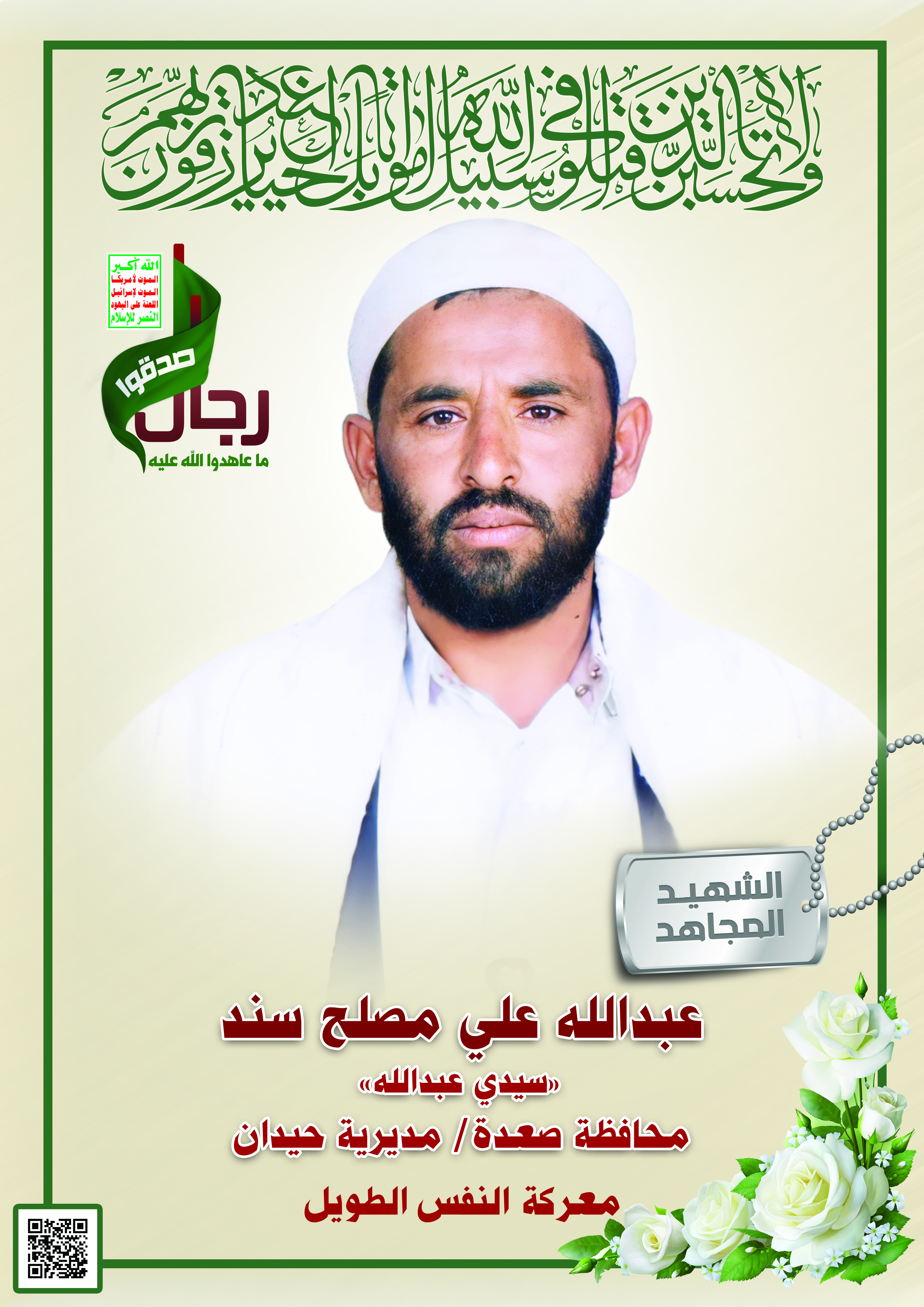 Actor عبدالله علي مصلح سند Filmography الشهيد المجاهد: عبدالله علي مصلح سند – سيدي عبدالله المحافظة: صعدة المديرية: حيدان – مران معركة النفس الطويل رقم الحافظة: 123120