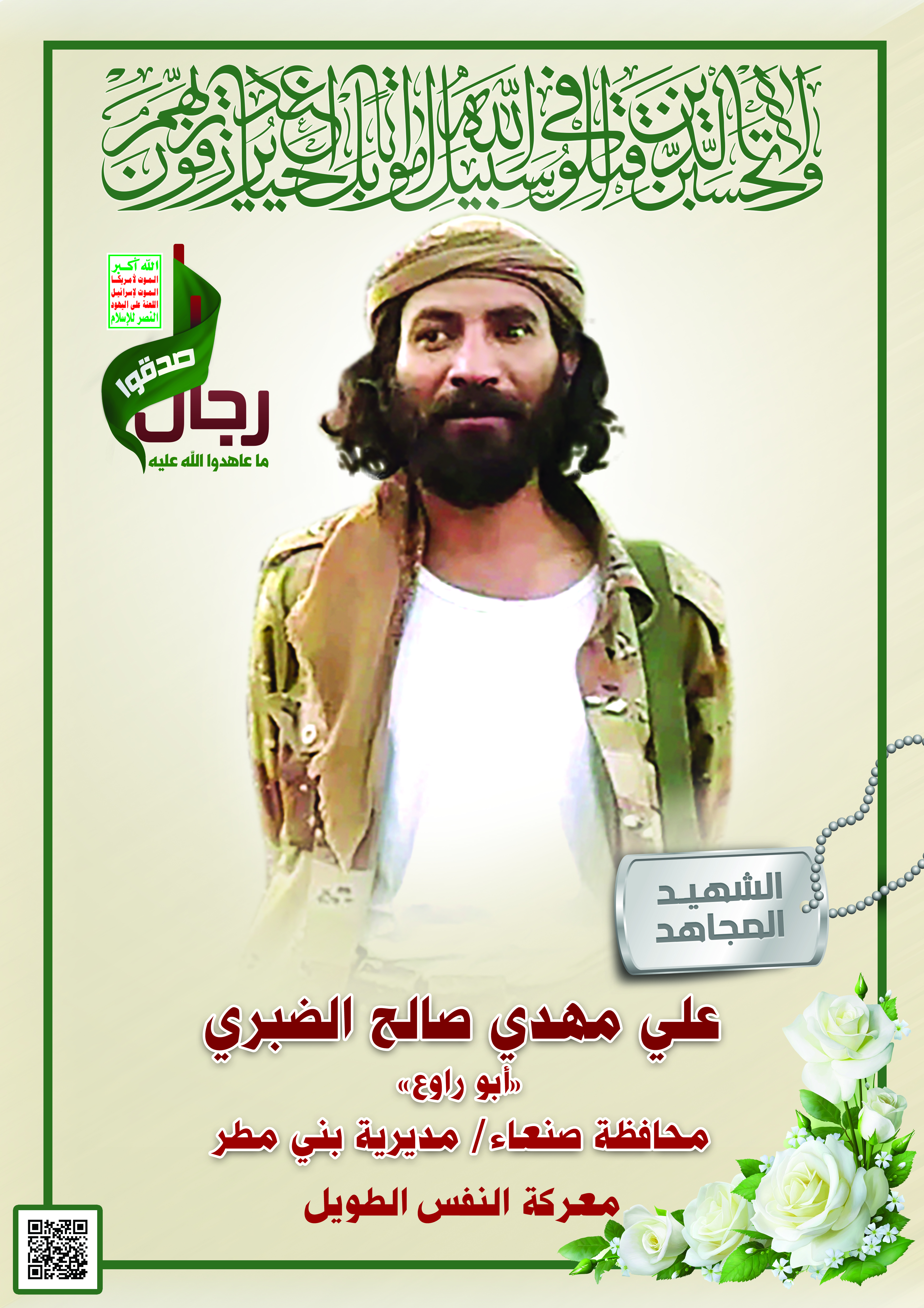 Actor علي مهدي صالح علي الضبري Filmography الشهيد المجاهد: علي مهدي صالح علي الضبري – أبو راوع المحافظة: صنعاء المديرية: بني مطر – المراحضة معركة النفس الطويل رقم الحافظة: 123151