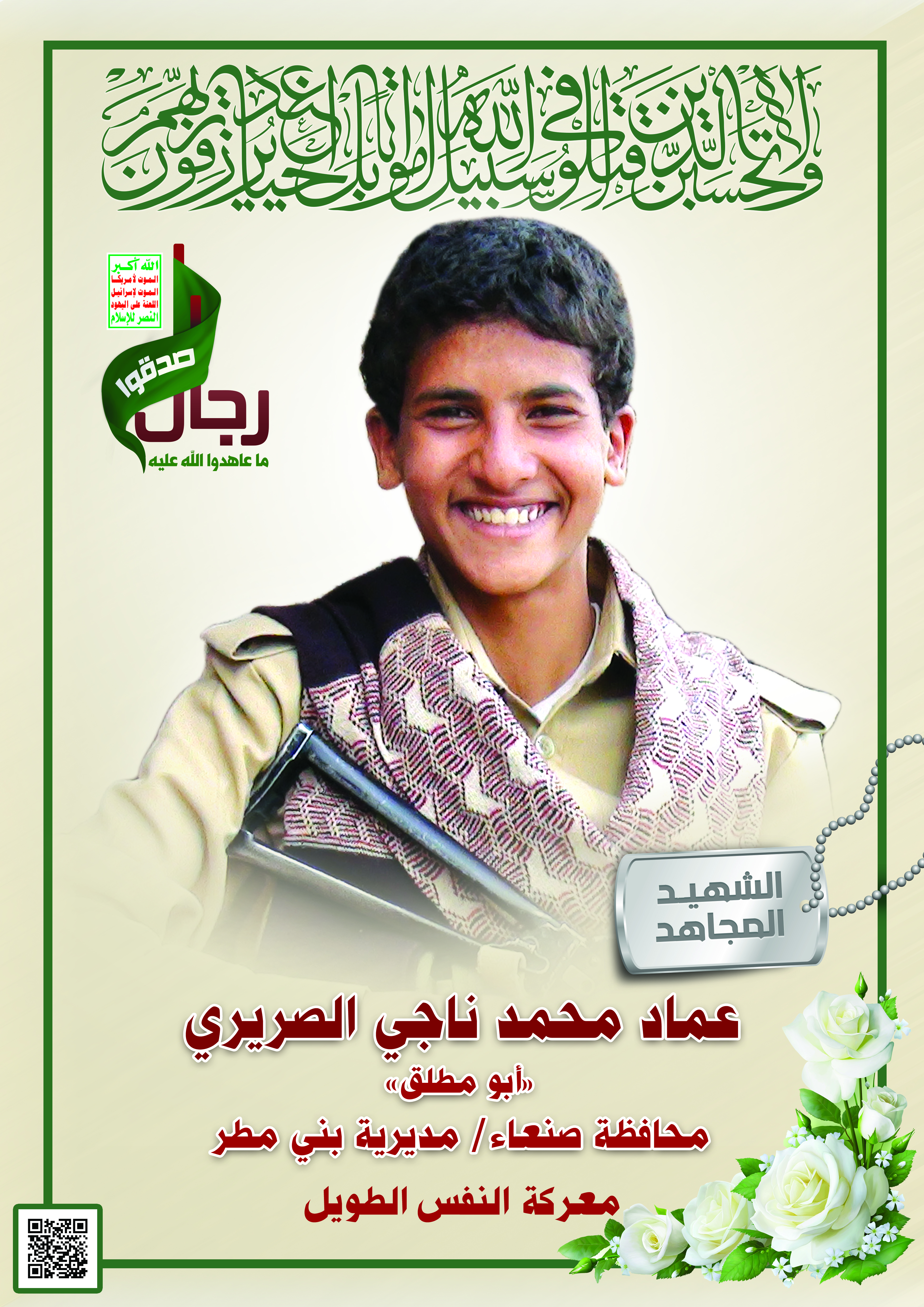 Actor عماد محمد ناجي علي يحيى الصريري Filmography الشهيد المجاهد: عماد محمد ناجي علي يحيى الصريري – أبو مطلق المحافظة: صنعاء المديرية: بني مطر – معركة النفس الطويل رقم الحافظة: 123153