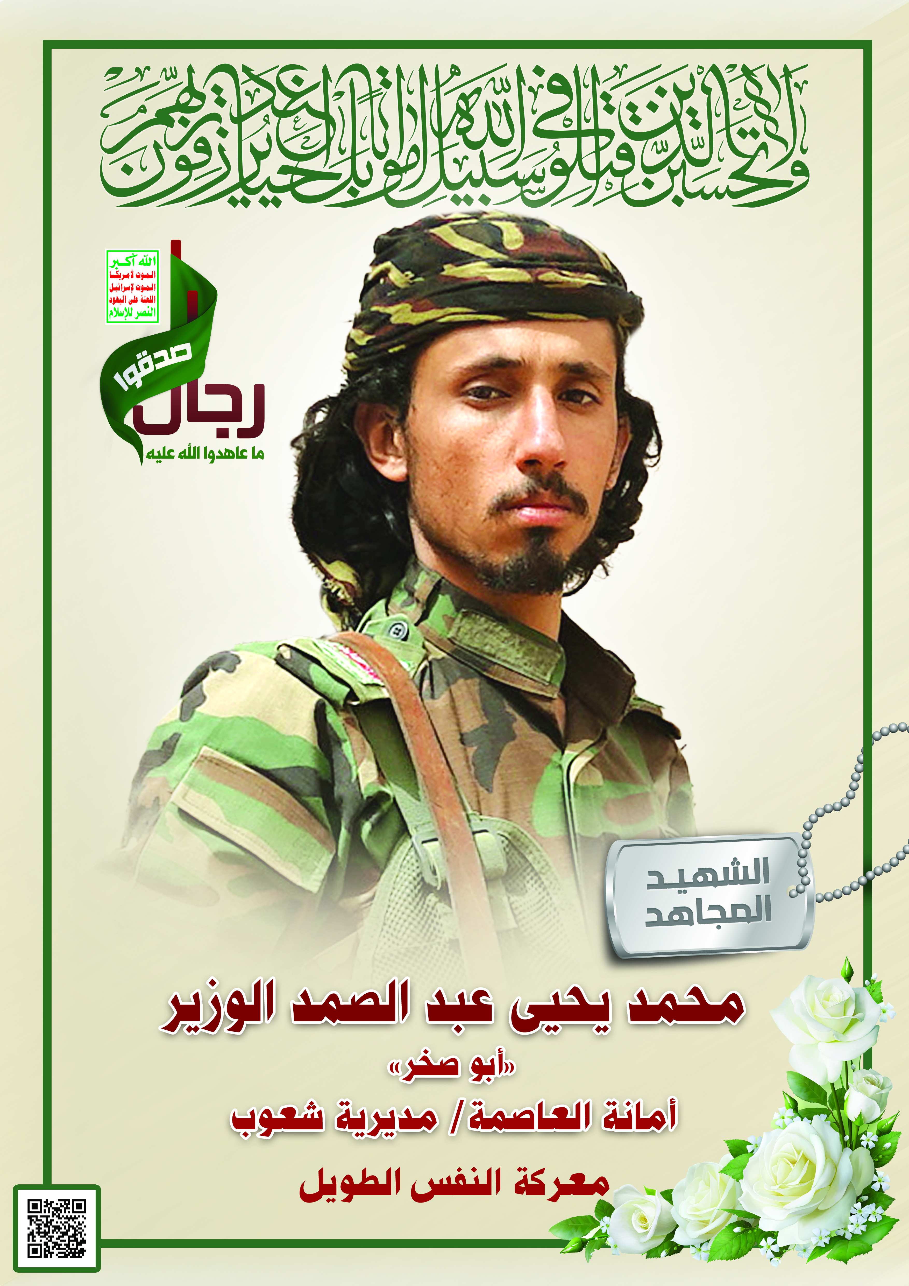 Actor محمد يحيى عبدالصمد أحمد حسن الوزير Filmography الشهيد المجاهد: محمد يحيى عبدالصمد أحمد حسن الوزير – أبو صخر المحافظة: الأمانة المديرية: شعوب – معركة النفس الطويل رقم الحافظة: 123199 FILMOGRAPHY icon مدرسة الإيمان – القول السديد – 1442هـ 30/12/2020 23/12/2021 icon لكم الخلود – الشهيد المجاهد محمد يحيى عبدالصمد احمد حسن الوزير (أبو صخر) 14/09/2020 24/11/2021