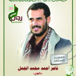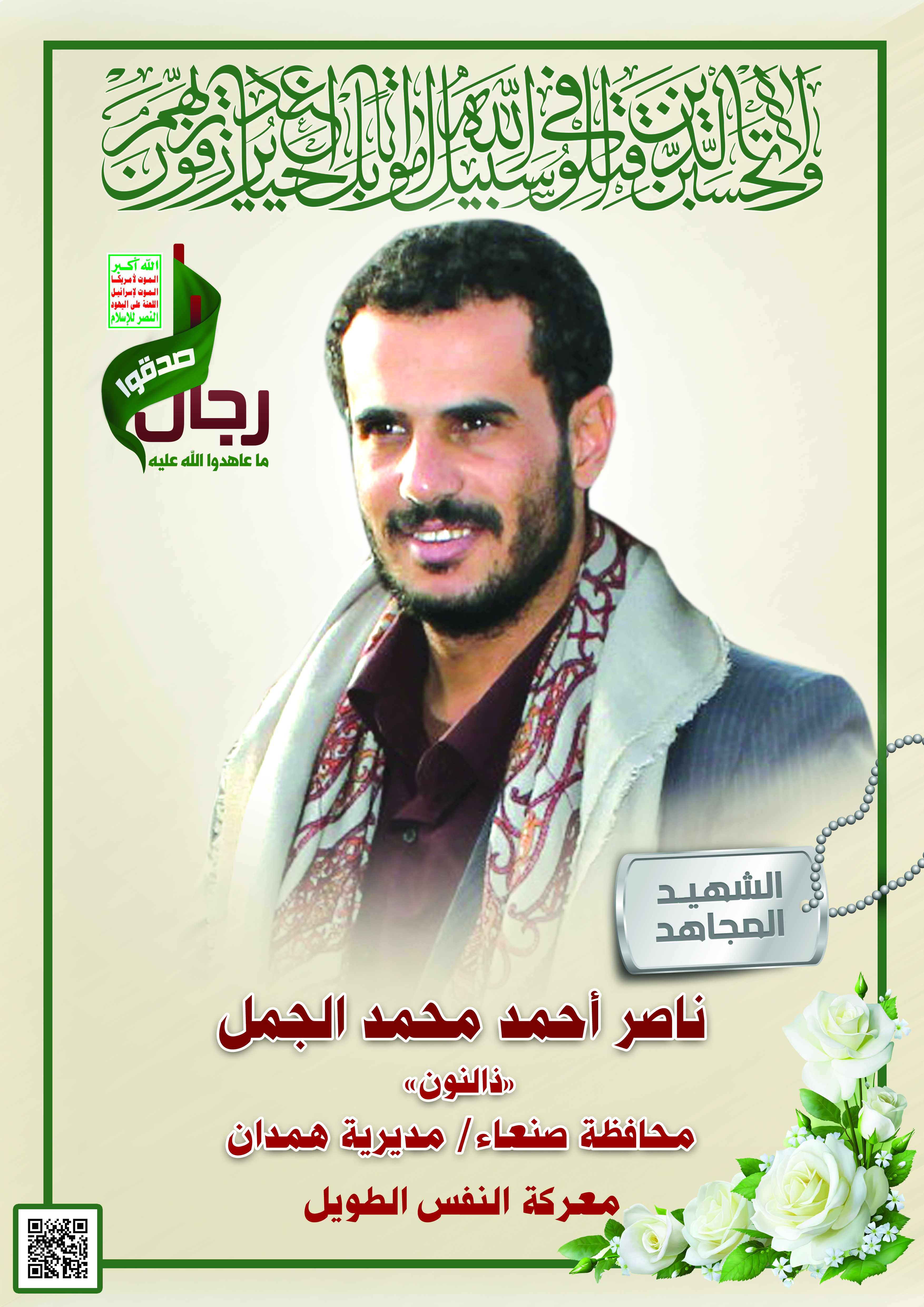 Actor ناصر أحمد محمد الجمل Filmography الشهيد المجاهد: ناصر أحمد محمد الجمل – ذالنون المحافظة: صنعاء المديرية: همدان – بيت نعم معركة النفس الطويل رقم الحافظة: 123216 FILMOGRAPHY icon نشيد عطاء الشهداء – ثلة من الشهداء 21/11/2024 21/11/2024 icon عطاء الشهداء – الشهيد ناصر أحمد محمد الجمل – ذا النون 17/11/2024 17/11/2024 icon ناصر أحمد محمد الجمل “ذا النون” 30/06/2017 22/11/2021