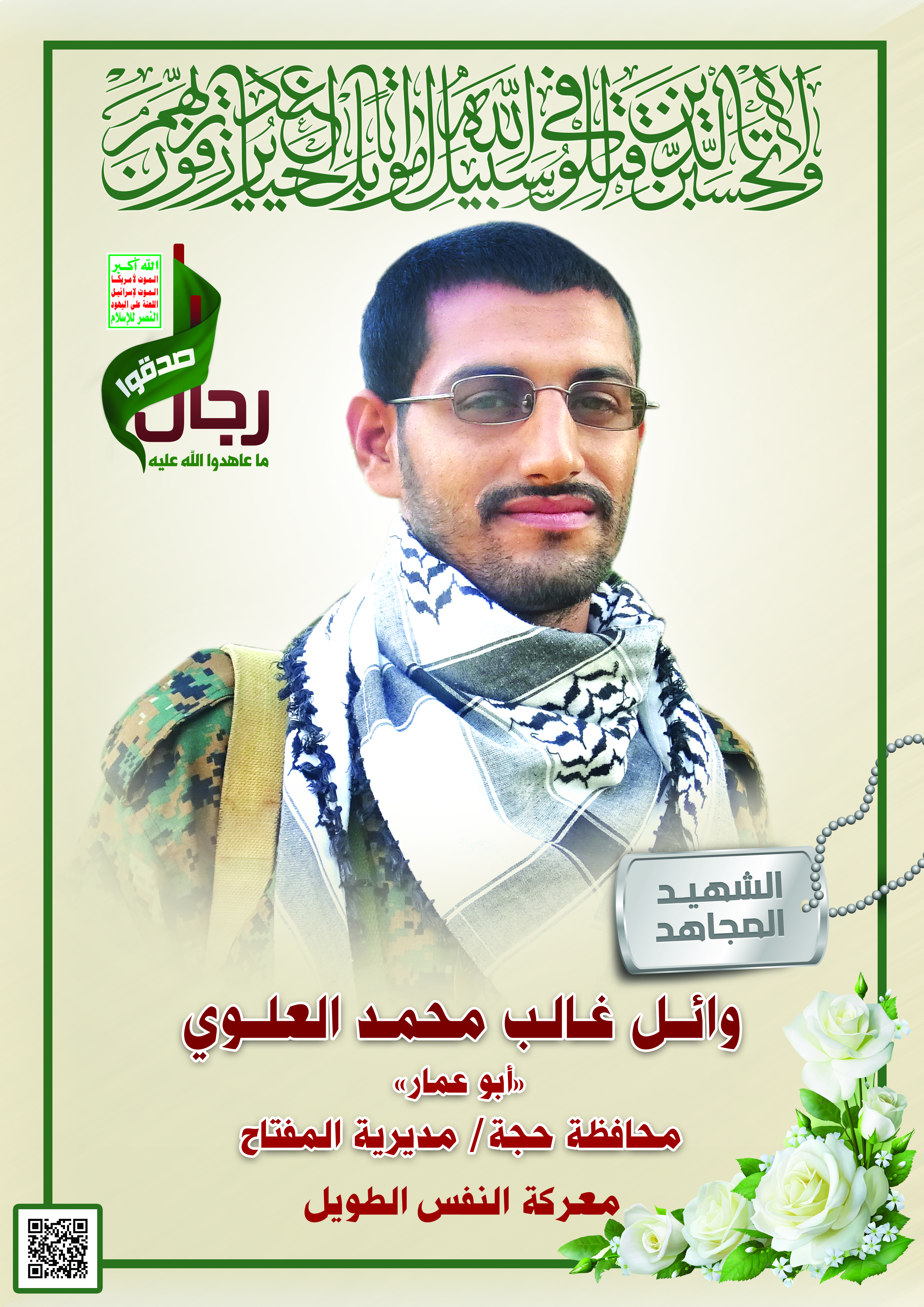 Actor وائل غالب محمد حسن العلوي Filmography الشهيد المجاهد: وائل غالب محمد حسن العلوي – أبو عمار المحافظة: حجة المديرية: المفتاح – بني الجرادي معركة النفس الطويل رقم الحافظة: 123225