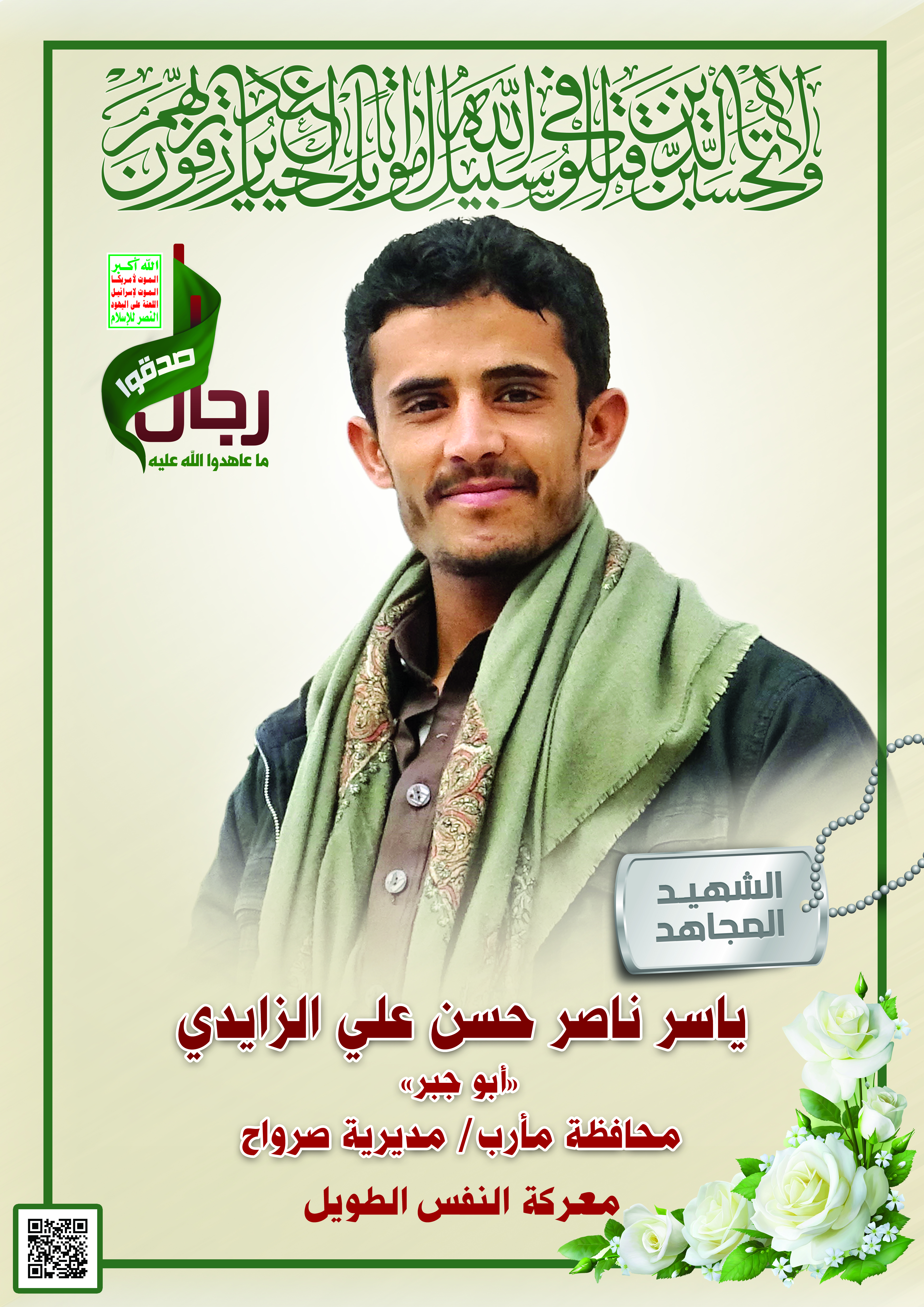Actor ياسر ناصر حسن علي الزايدي Filmography الشهيد المجاهد: ياسر ناصر حسن علي الزايدي – أبو جبر المحافظة: مأرب المديرية: صرواح – معركة النفس الطويل رقم الحافظة: 123228