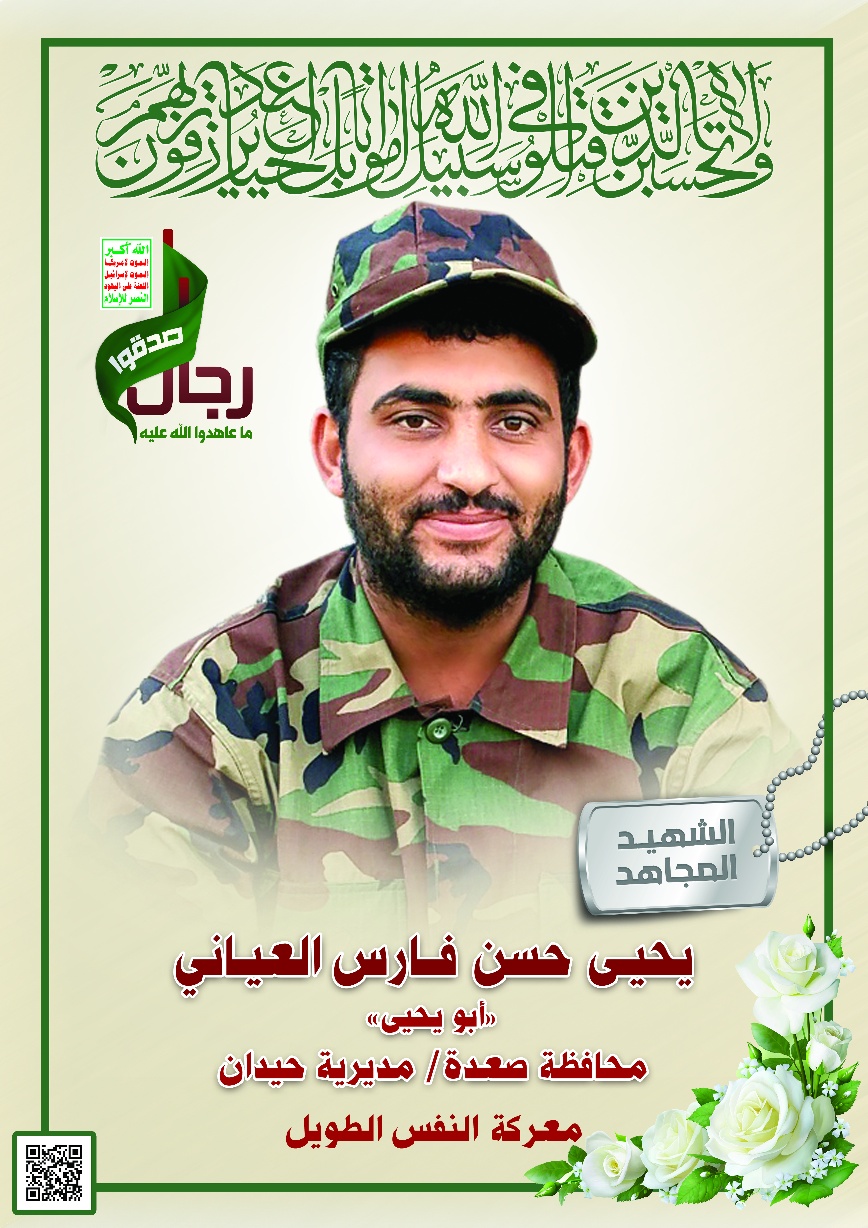Actor يحيى حسن فارس العياني Filmography الشهيد المجاهد: يحيى حسن فارس العياني – أبو يحيى المحافظة: صعدة المديرية: حيدان – ولد نوار معركة النفس الطويل رقم الحافظة: 123231