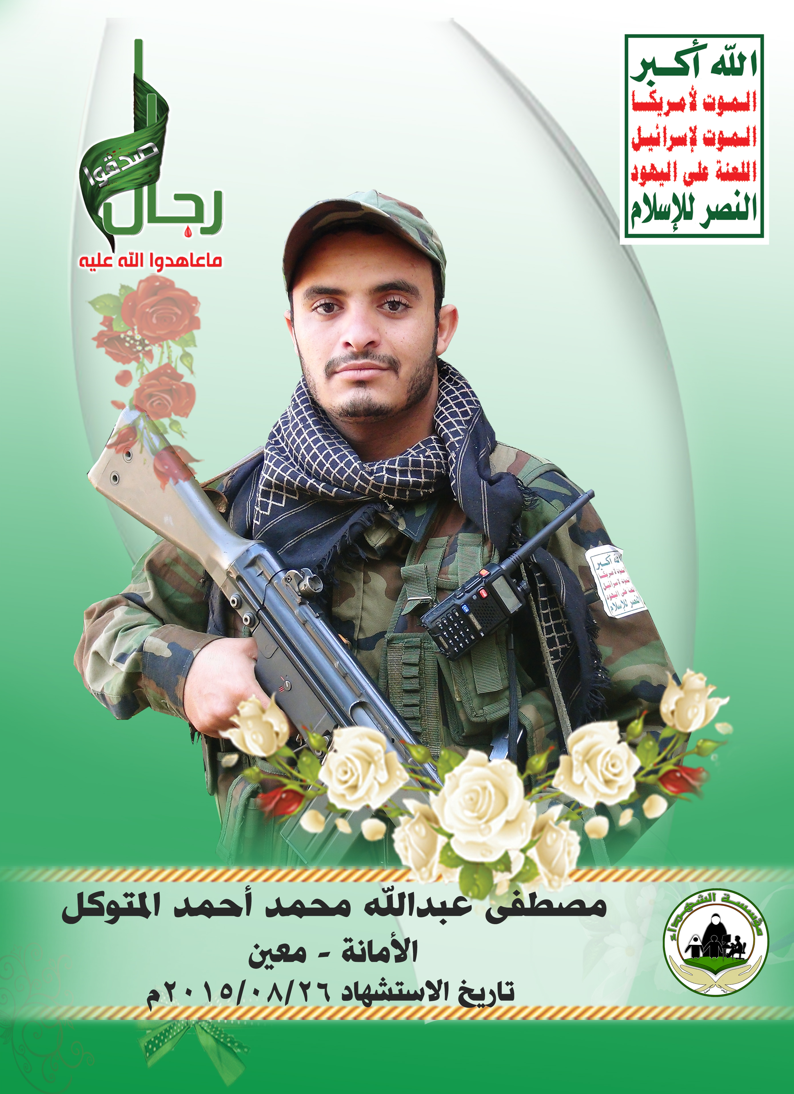 Actor مصطفى عبدالصمد علي المتوكل Filmography الشهيد المجاهد: مصطفى عبدالصمد علي المتوكل – المحافظة: الأمانة المديرية: حي الثورة – معركة النفس الطويل رقم الحافظة: 123629