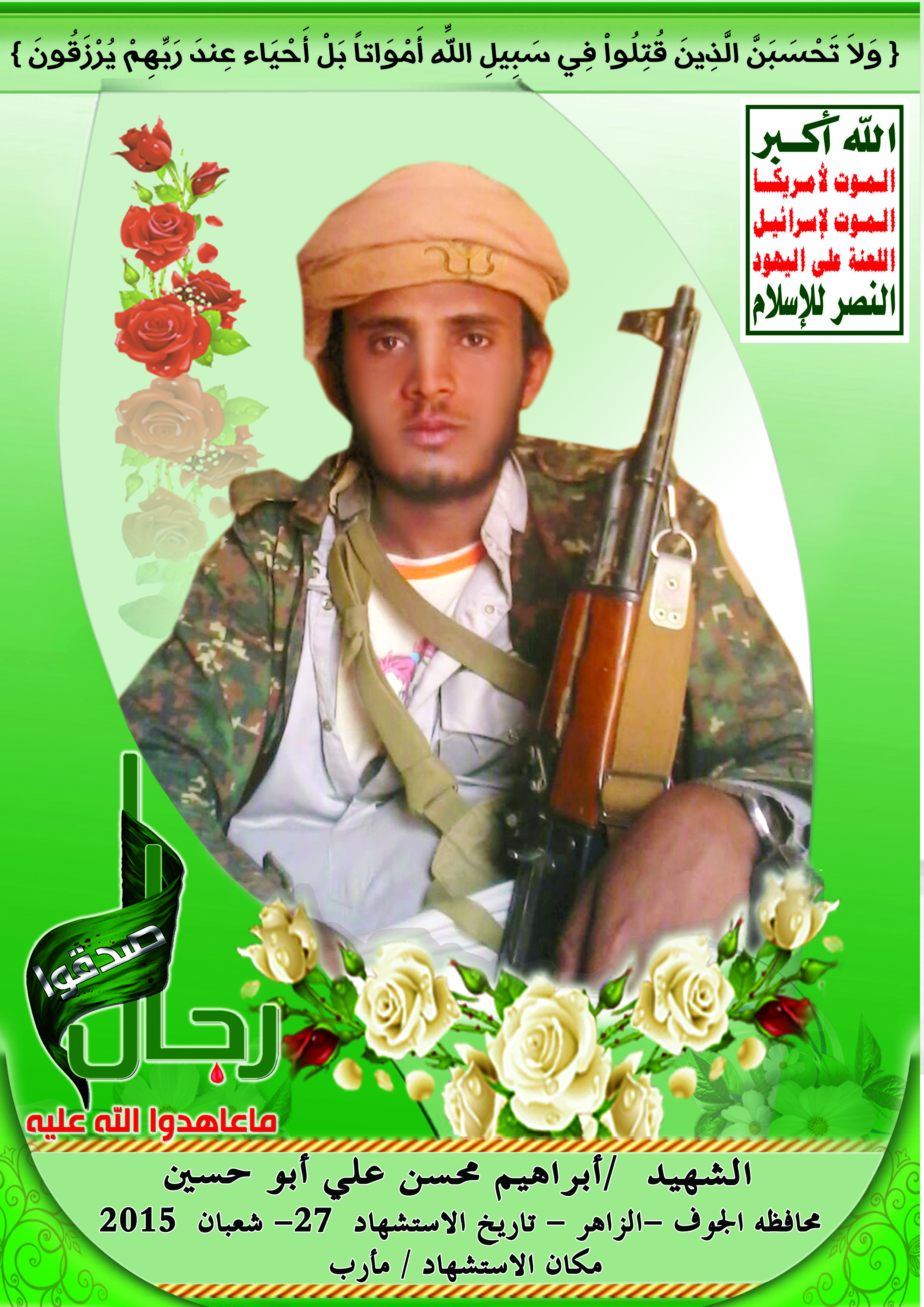 Actor إبراهيم محسن علي Filmography الشهيد المجاهد: إبراهيم محسن علي – أبو حسين المحافظة: الجوف المديرية: الزاهر – معركة النفس الطويل رقم الحافظة: 123734