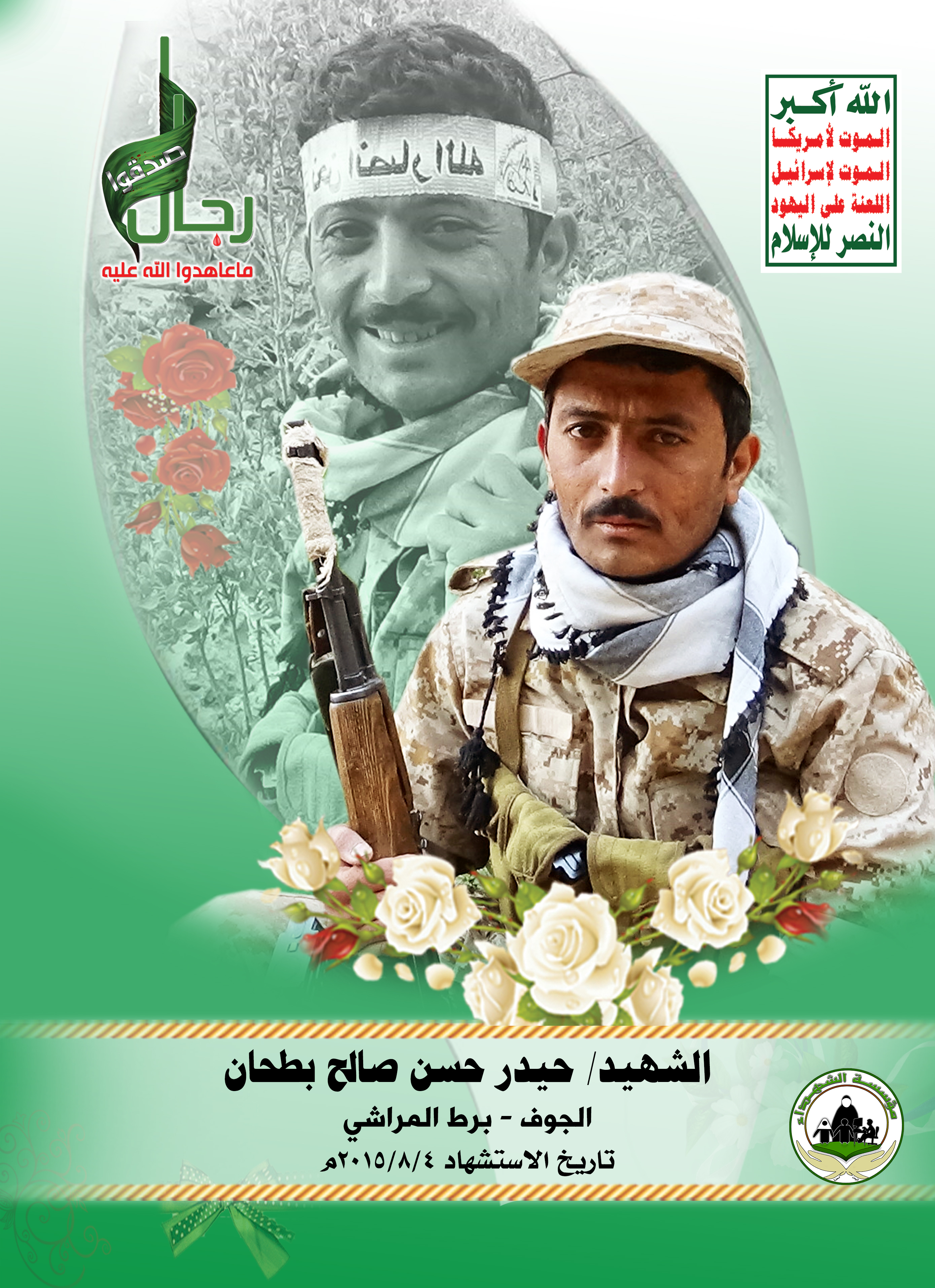 Actor حيدر حسن صالح عبدالله بطحان Filmography الشهيد المجاهد: حيدر حسن صالح عبدالله بطحان – أبو سفيان المحافظة: الجوف المديرية: برط المراشي – الجلجلة معركة النفس الطويل رقم الحافظة: 123806