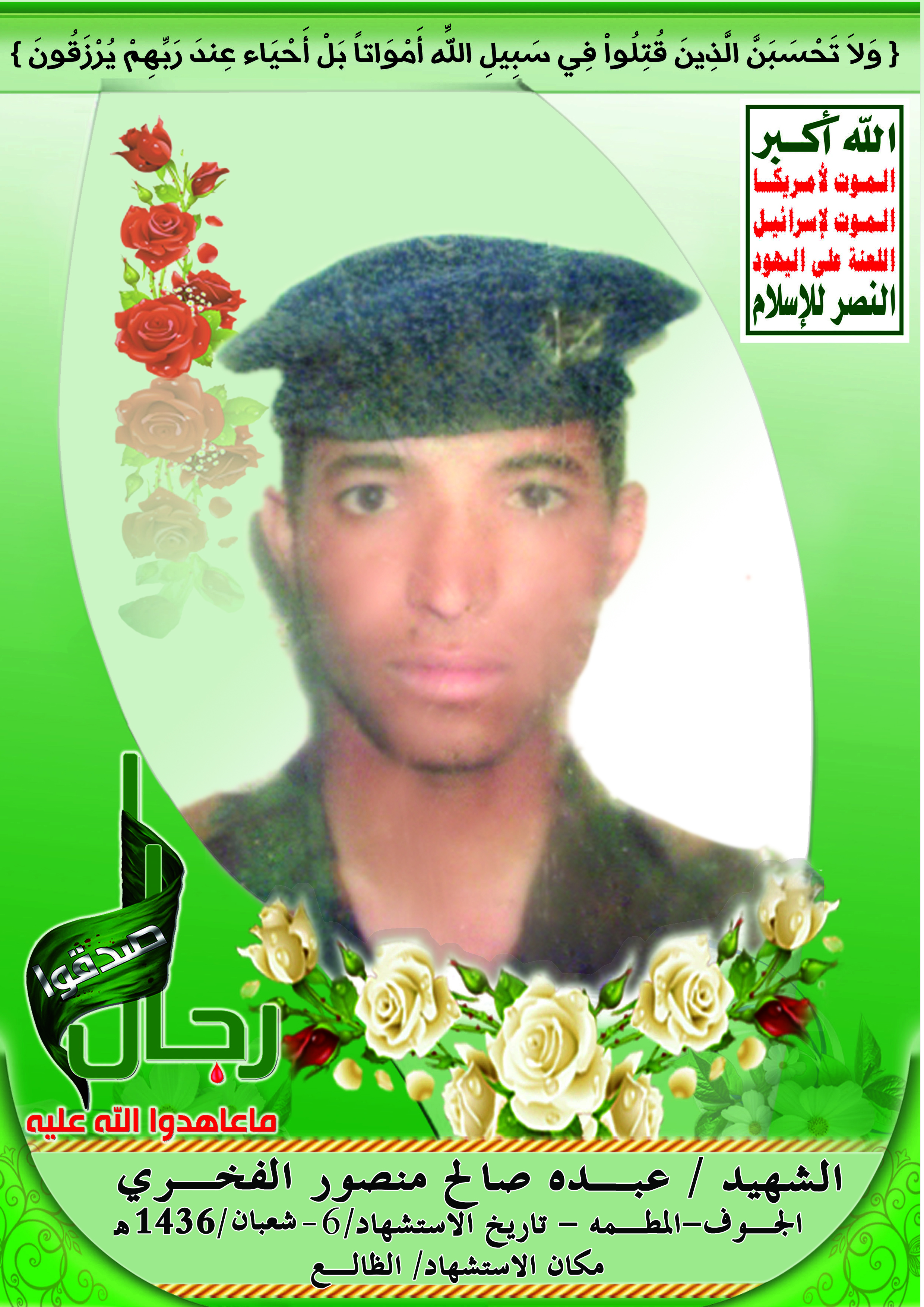 Actor عبده صالح منصور الفخري Filmography الشهيد المجاهد: عبده صالح منصور الفخري – المحافظة: الجوف المديرية: المطمة – معركة النفس الطويل رقم الحافظة: 123955