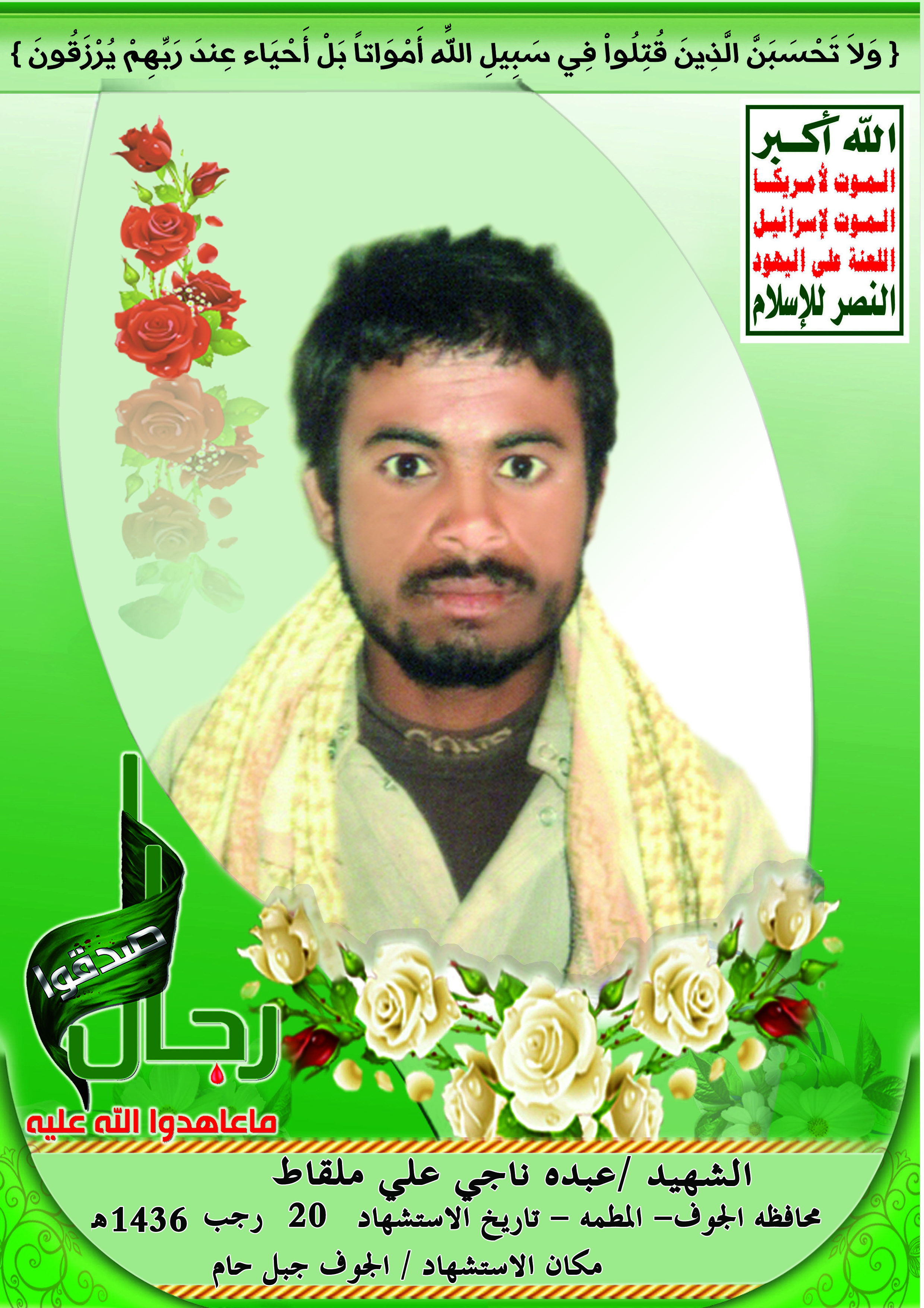 Actor عبده ناجي علي ملقاط Filmography الشهيد المجاهد: عبده ناجي علي ملقاط – المحافظة: الجوف المديرية: المطمة – معركة النفس الطويل رقم الحافظة: 123958