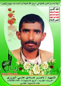 Actor ناصر هادي علي البوزري Filmography الشهيد المجاهد: ناصر هادي علي البوزري – المحافظة: الجوف المديرية: المطمة – معركة النفس الطويل رقم الحافظة: 124095