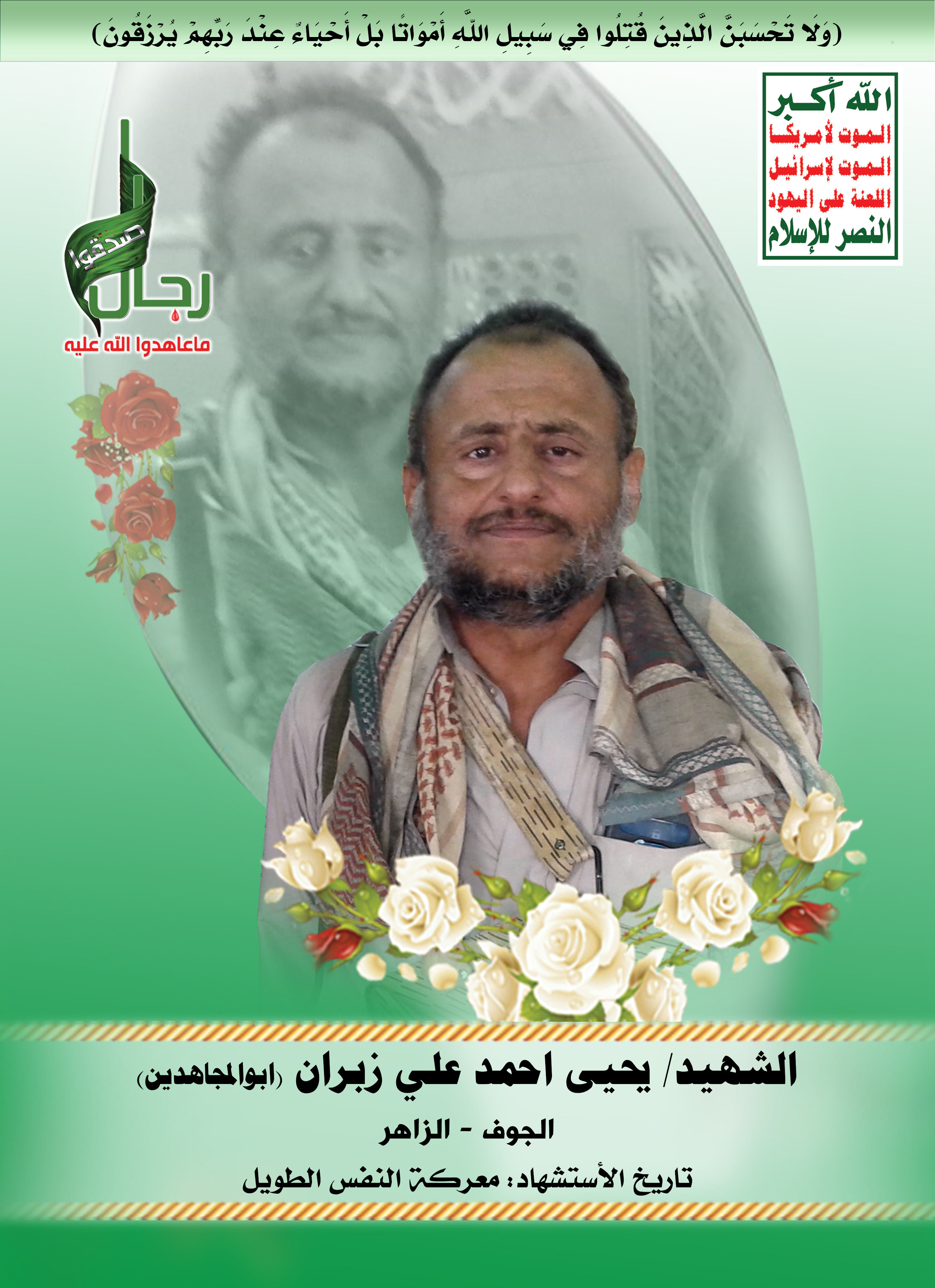 Actor يحيى أحمد علي زبران Filmography الشهيد المجاهد: يحيى أحمد علي زبران – أبو المجاهدين المحافظة: الجوف المديرية: الزاهر السعموم – معركة النفس الطويل رقم الحافظة: 124114