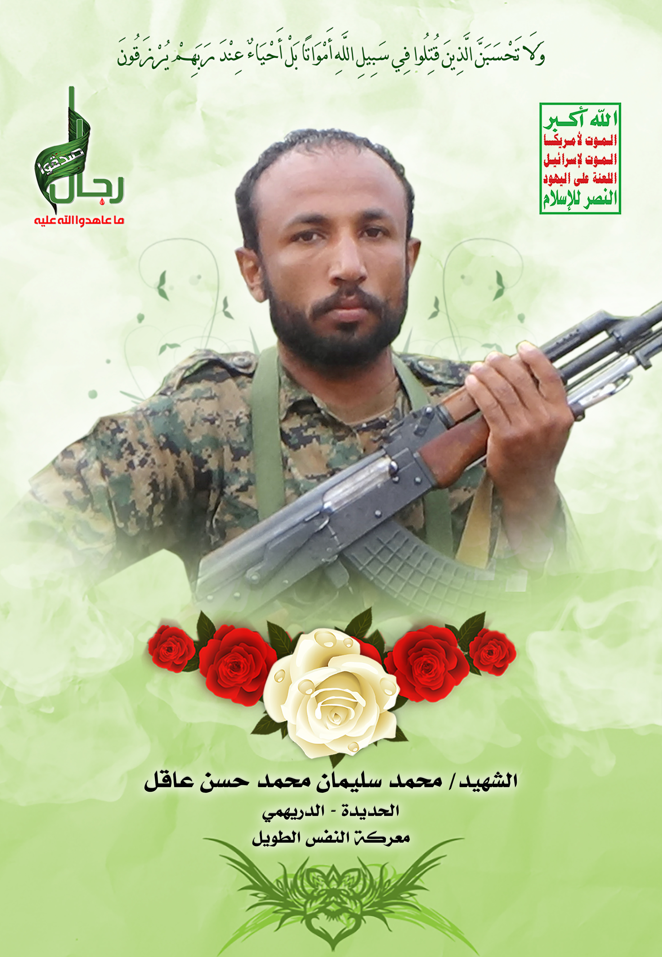 Actor محمد سليمان محمد حسن عاقل Filmography الشهيد المجاهد: محمد سليمان محمد حسن عاقل – أبو سليمان المحافظة: الحديدة المديرية: الدريهمي – معركة النفس الطويل رقم الحافظة: 124324