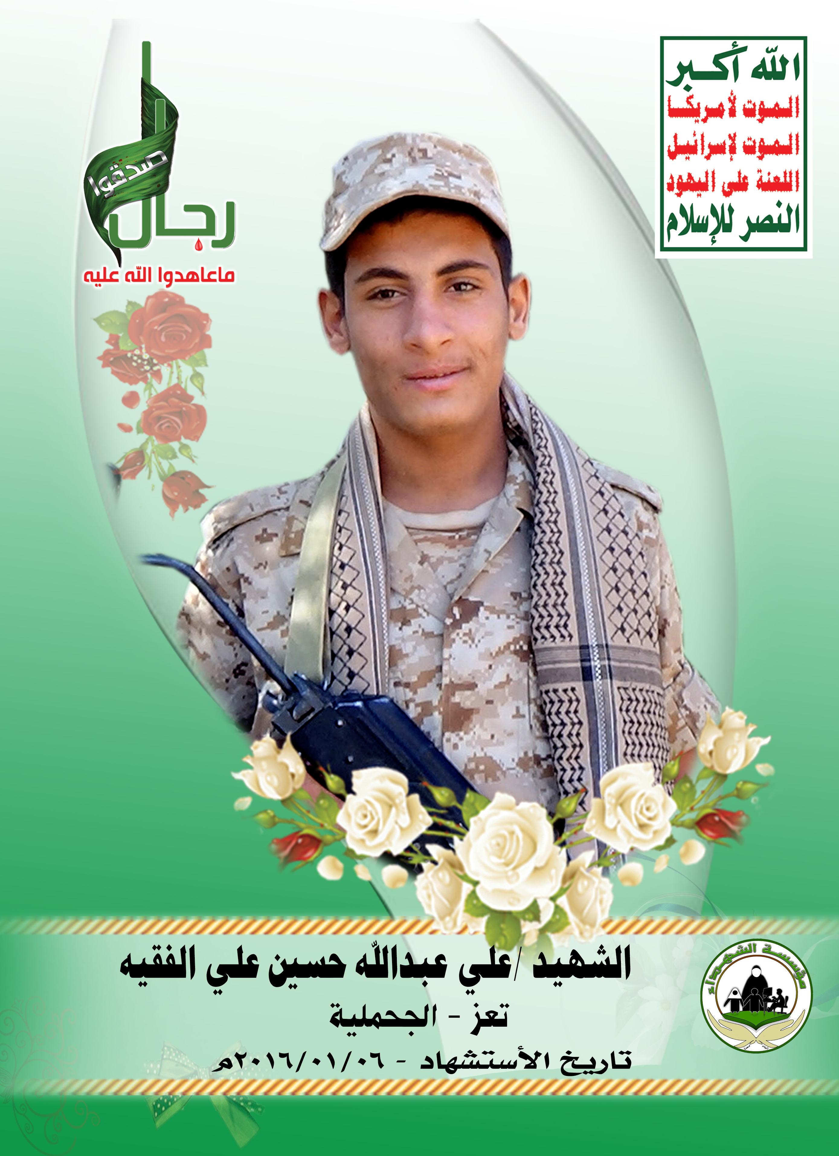 Actor علي عبدالله حسين الفقيه Filmography الشهيد المجاهد: علي عبدالله حسين الفقيه – المحافظة: تعز المديرية: الجحملية – معركة النفس الطويل رقم الحافظة: 124726