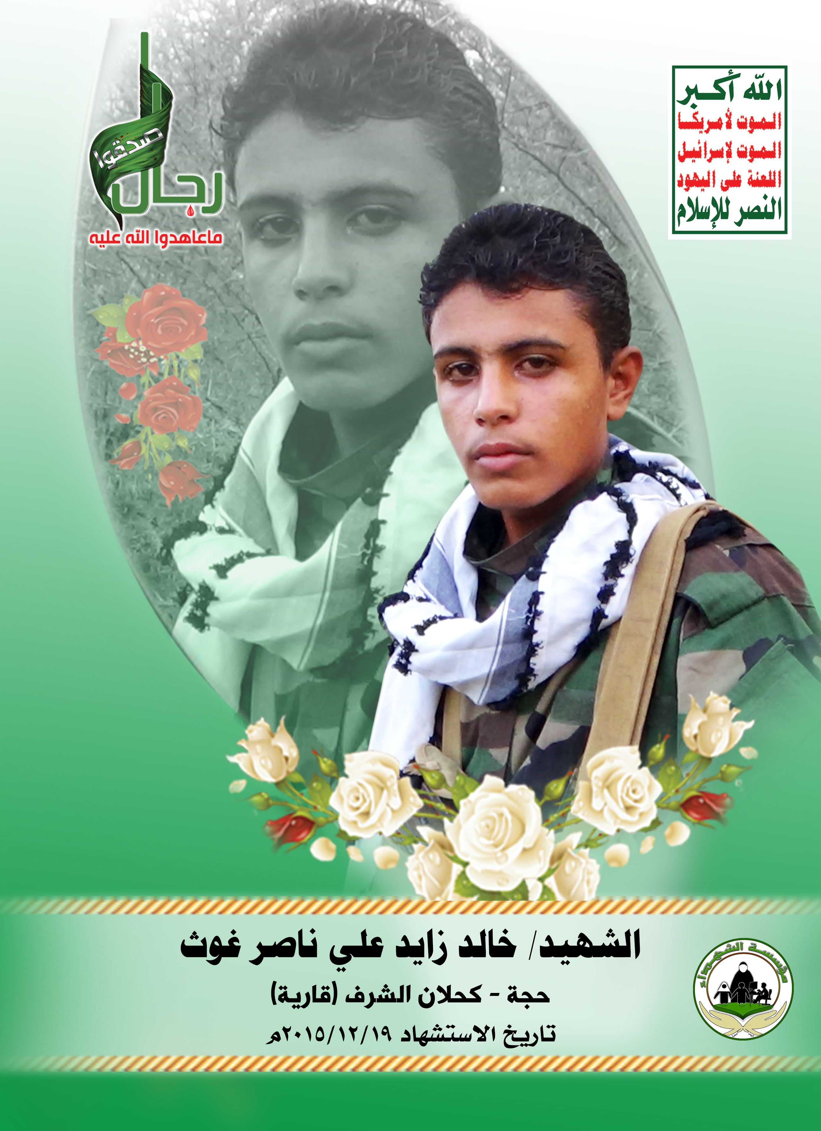 Actor خالد زايد علي ناصر غوث Filmography الشهيد المجاهد: خالد زايد علي ناصر غوث – المحافظة: حجة المديرية: كحلان الشرف قارية – معركة النفس الطويل رقم الحافظة: 124982