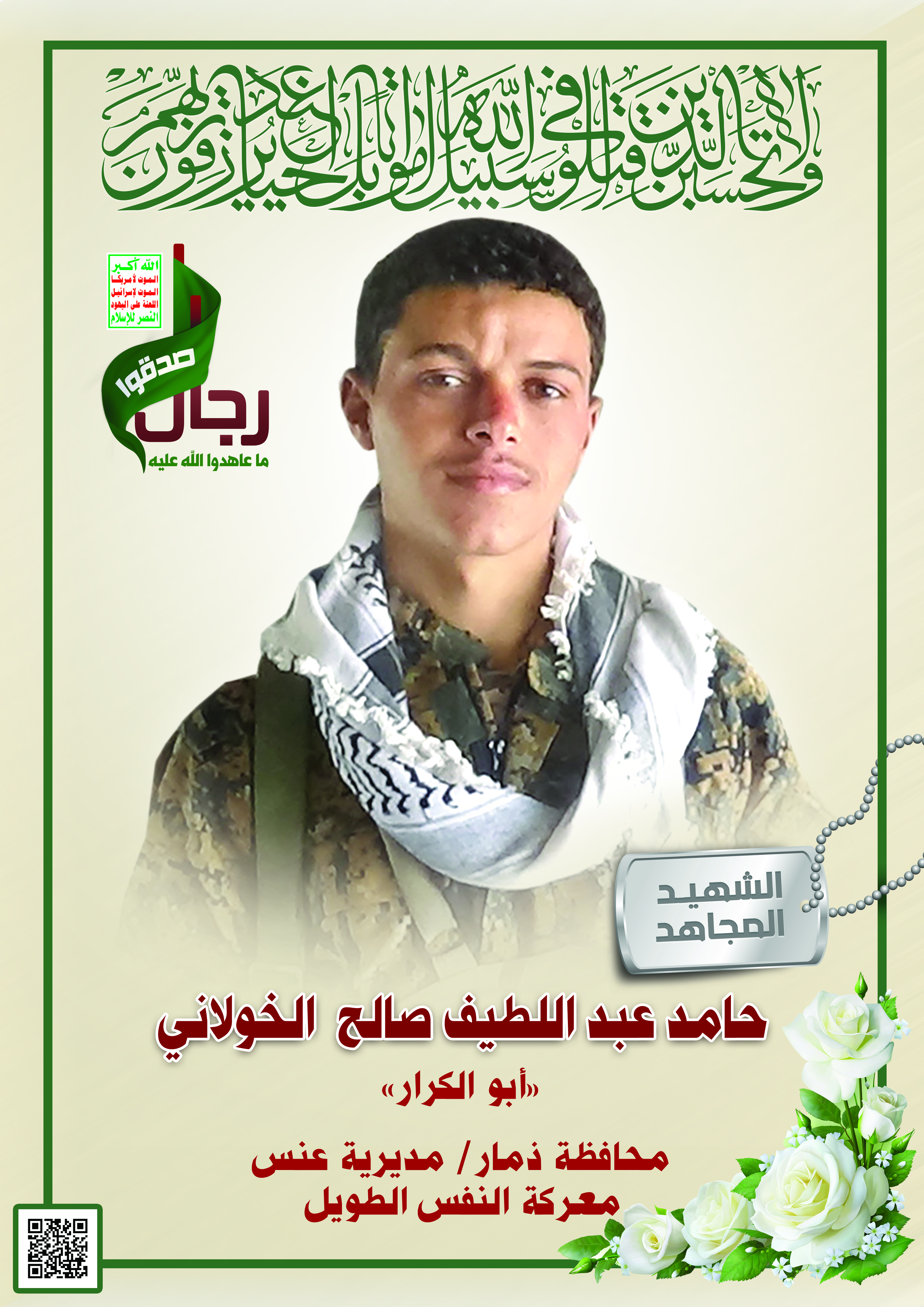 Actor حامد عبداللطيف صالح أحمد ناصر الخولاني Filmography الشهيد المجاهد: حامد عبداللطيف صالح أحمد ناصر الخولاني – أبو الكرار المحافظة: ذمار المديرية: عنس – يعر معركة النفس الطويل رقم الحافظة: 125838