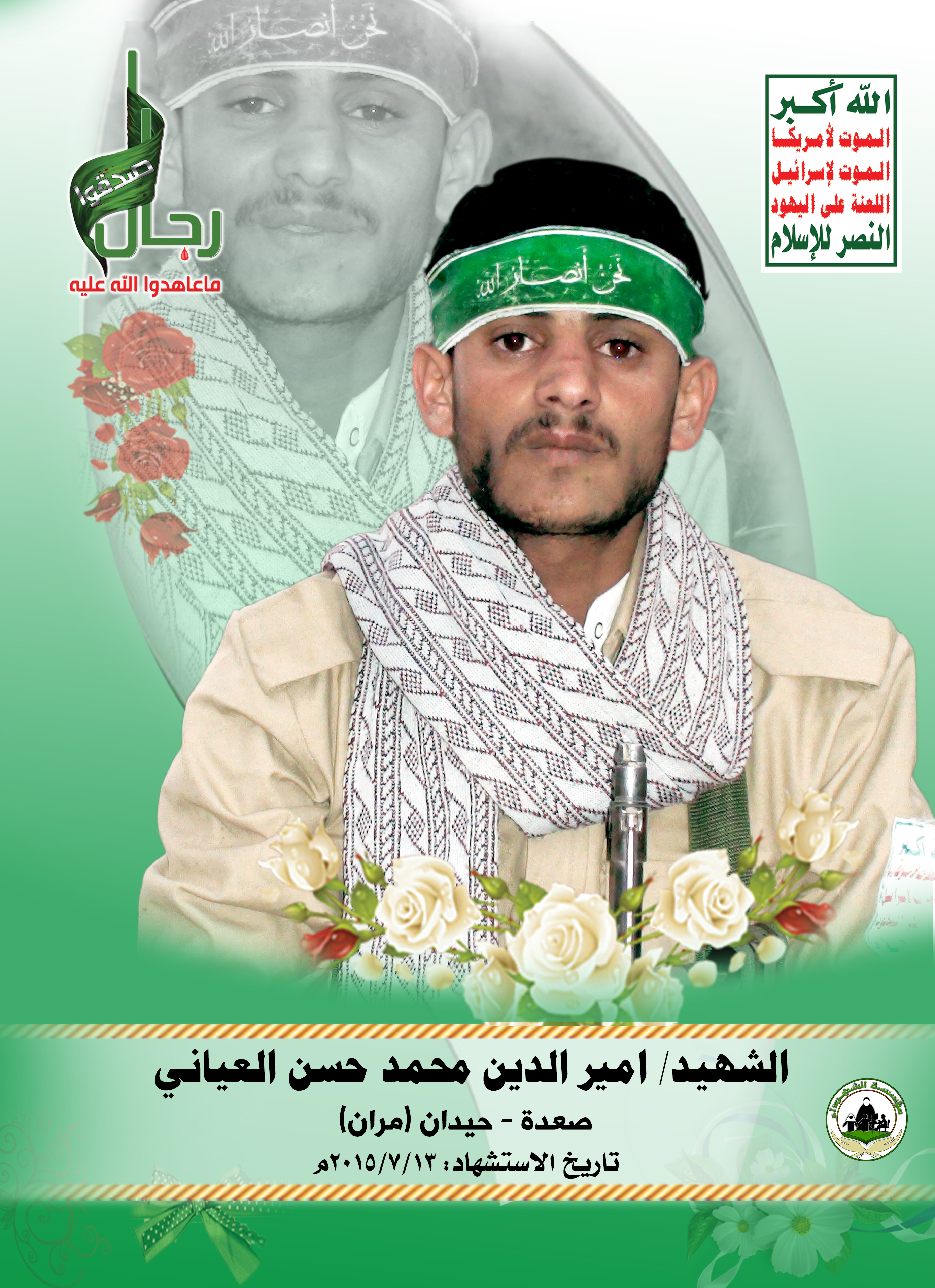 Actor أميرالدين محمد حسن العياني Filmography الشهيد المجاهد: أميرالدين محمد حسن العياني – أبو بدر المحافظة: صعدة المديرية: حيدان مران – معركة النفس الطويل رقم الحافظة: 126428