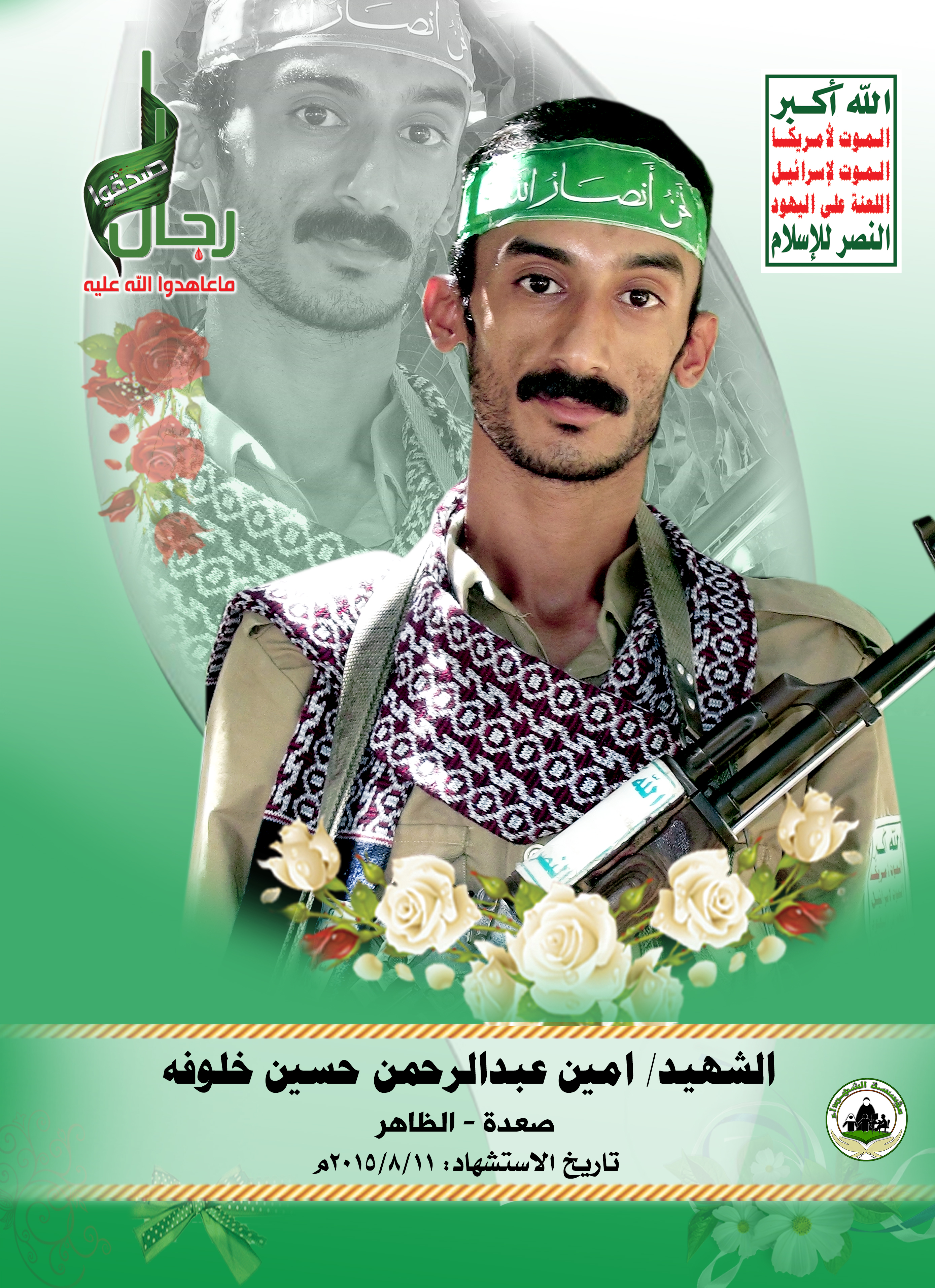 Actor أمين عبدالرحمن حسين خلوفه Filmography الشهيد المجاهد: أمين عبدالرحمن حسين خلوفه – أبو وليد المحافظة: صعدة المديرية: الظاهر – ال خلوفة معركة النفس الطويل رقم الحافظة: 126579