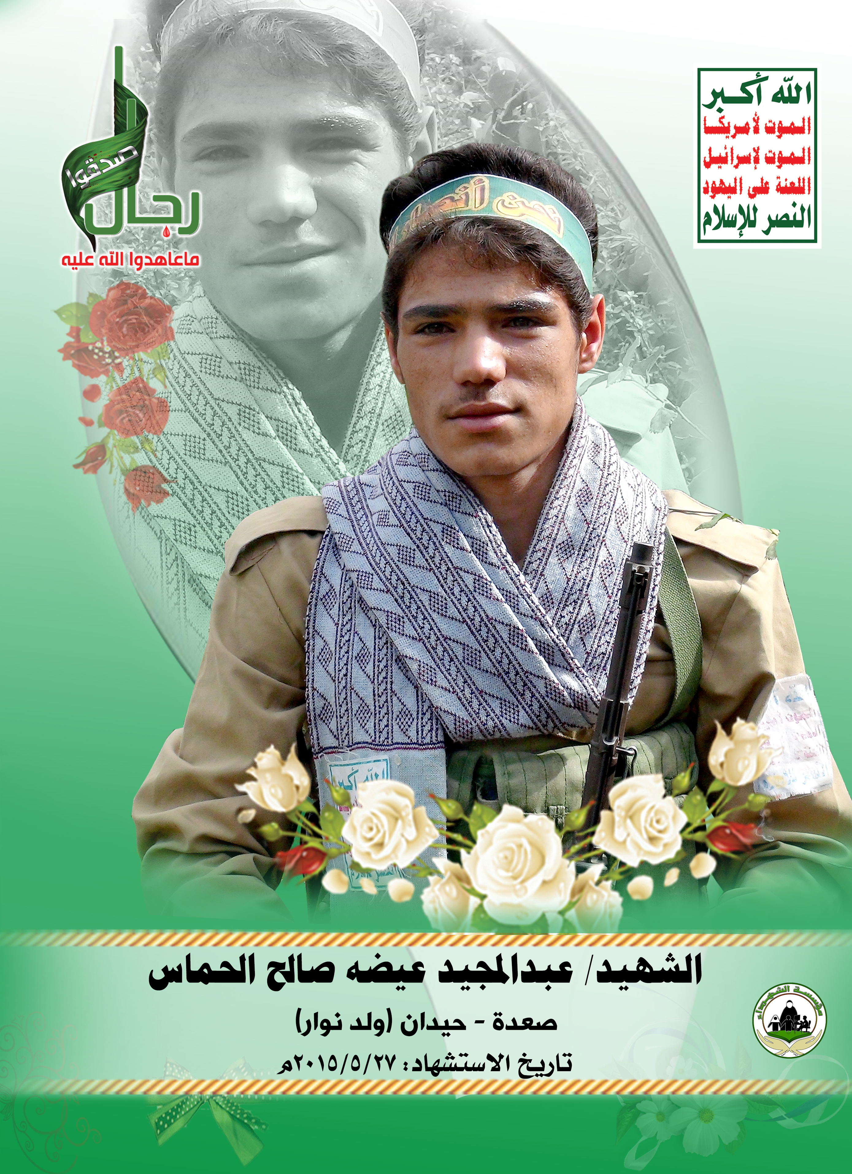 Actor عبدالمجيد عيضة صالح الحماس Filmography الشهيد المجاهد: عبدالمجيد عيضة صالح الحماس – المحافظة: صعدة المديرية: حيدان ولد نوار – معركة النفس الطويل رقم الحافظة: 127370