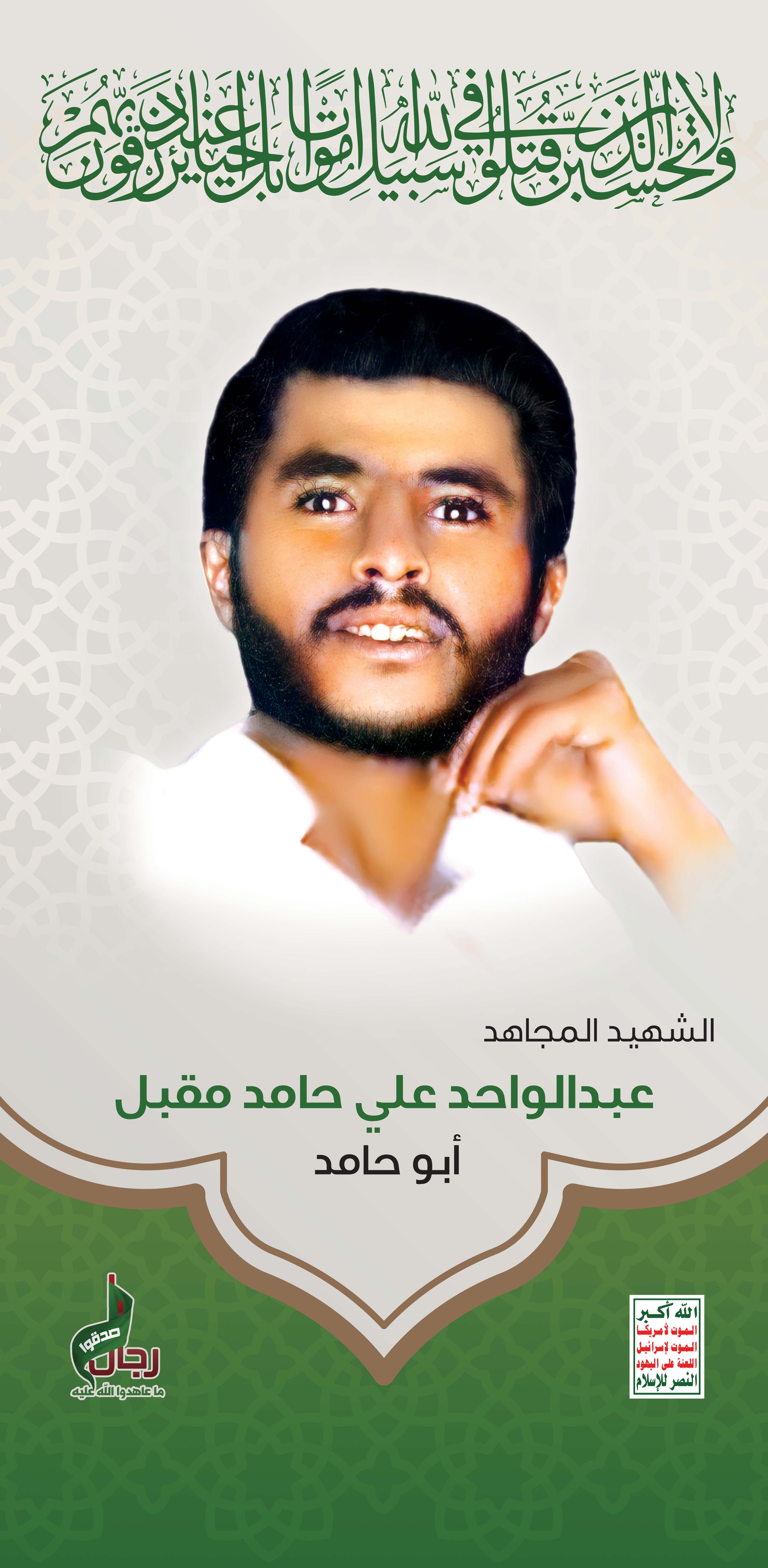 Actor عبدالواحد علي حامد Filmography الشهيد المجاهد: عبدالواحد علي حامد – المحافظة: صعدة المديرية: سحار رحبان – معركة النفس الطويل رقم الحافظة: 127391