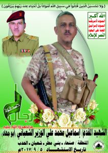 Actor إسماعيل محمد علي الوزير الشعباني Filmography الشهيد المجاهد: إسماعيل محمد علي الوزير الشعباني – أبو جهاد المحافظة: صنعاء المديرية: بني مطر الحدب – معركة النفس الطويل رقم الحافظة: 128168