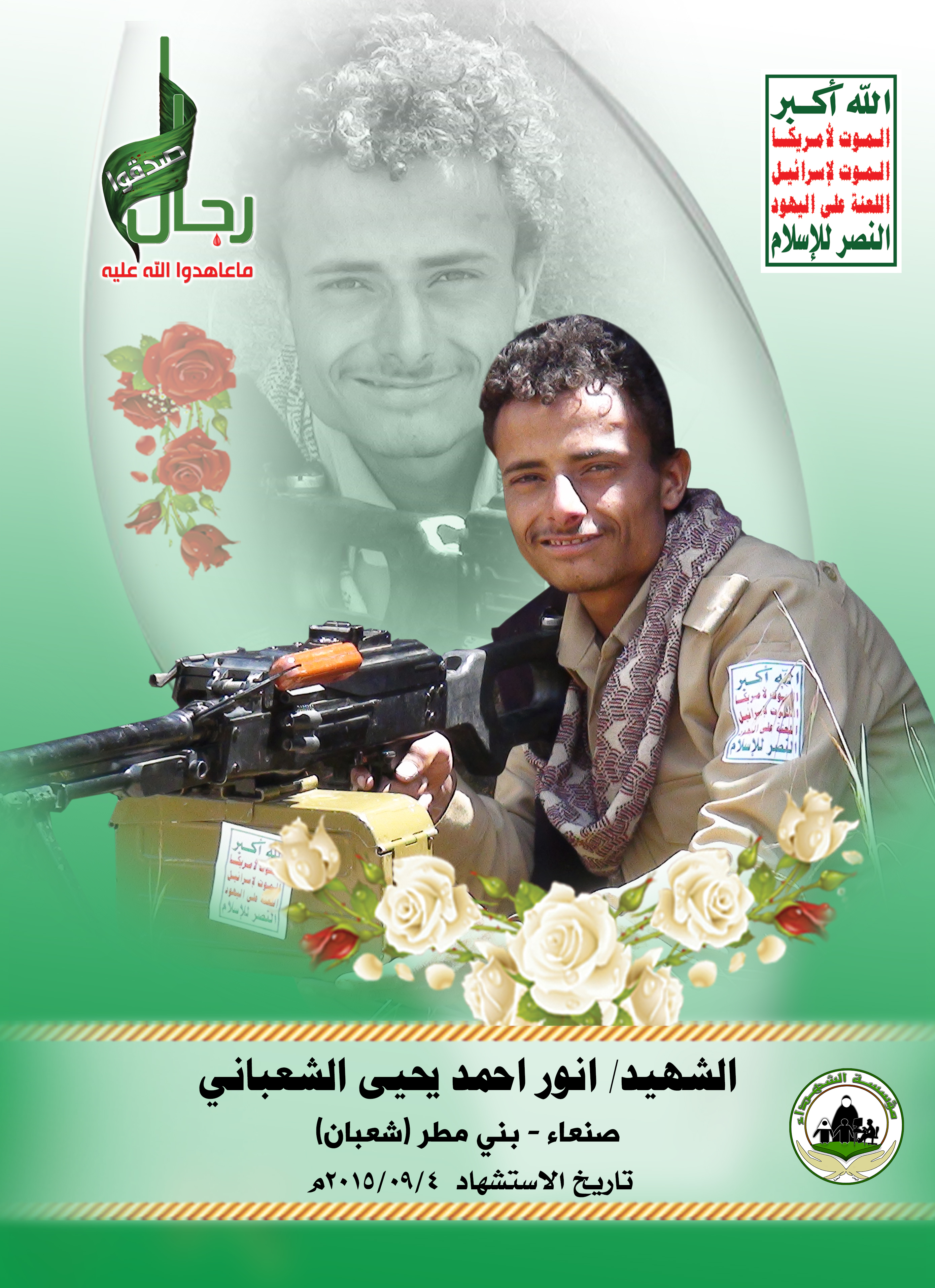 Actor أنور أحمد يحيى أحمد الشعباني Filmography الشهيد المجاهد: أنور أحمد يحيى أحمد الشعباني – المحافظة: صنعاء المديرية: بني مطر شعبان – معركة النفس الطويل رقم الحافظة: 128288