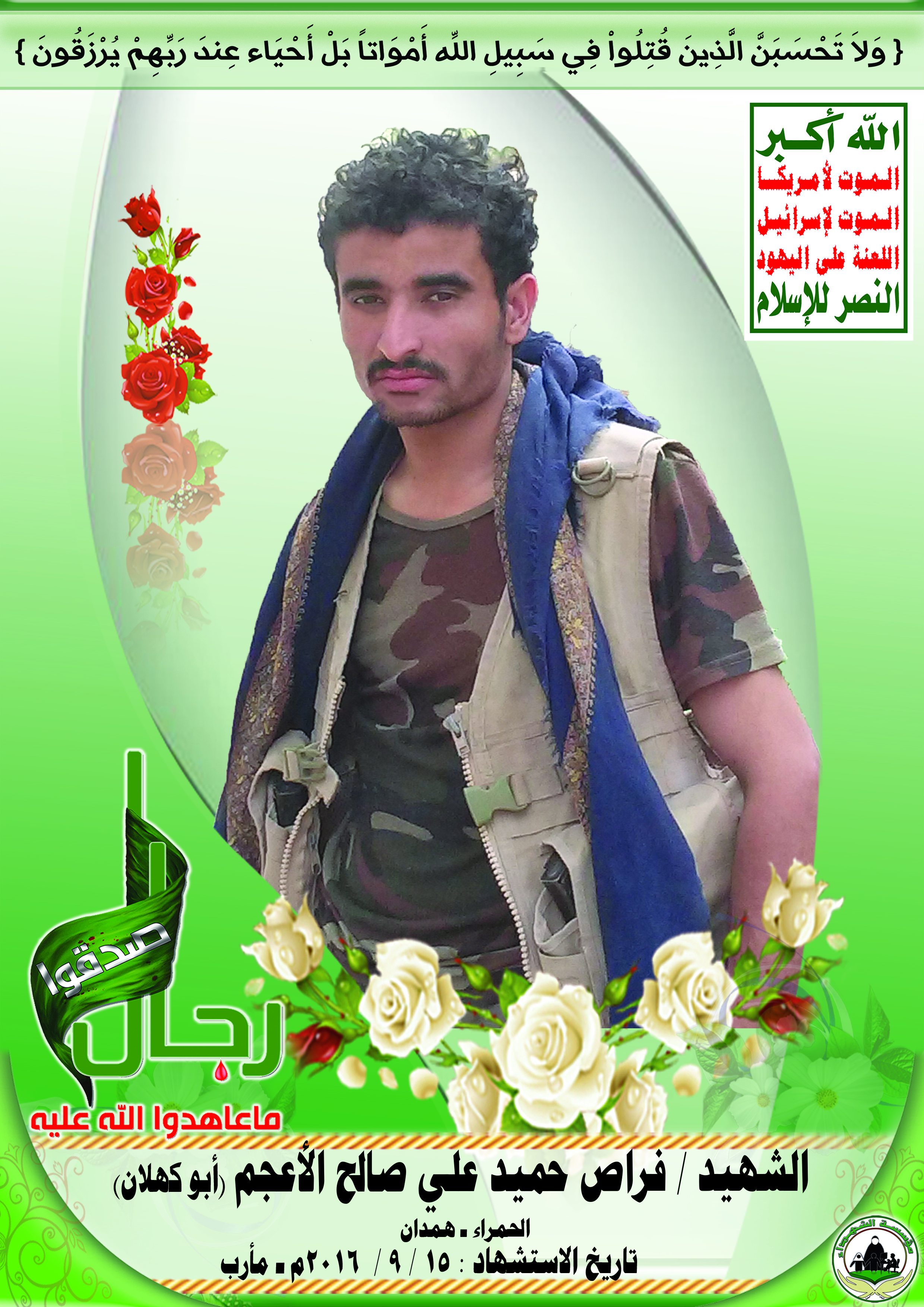Actor فراص حميد علي صالح الاعجم Filmography الشهيد المجاهد: فراص حميد علي صالح الاعجم – أبو كهلان المحافظة: صنعاء المديرية: همدان الحمراء – معركة النفس الطويل رقم الحافظة: 128863