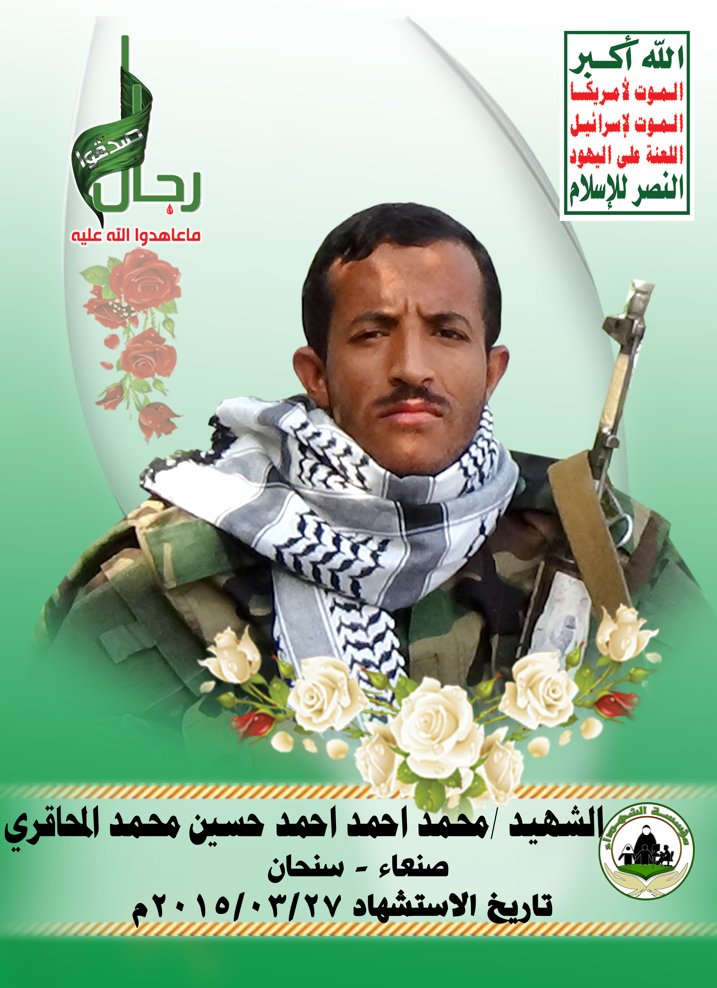 Actor محمد أحمد أحمد حسين محمد المحاقري Filmography الشهيد المجاهد: محمد أحمد أحمد حسين محمد المحاقري – المحافظة: صنعاء المديرية: سنحان المحاقرة – معركة النفس الطويل رقم الحافظة: 128928