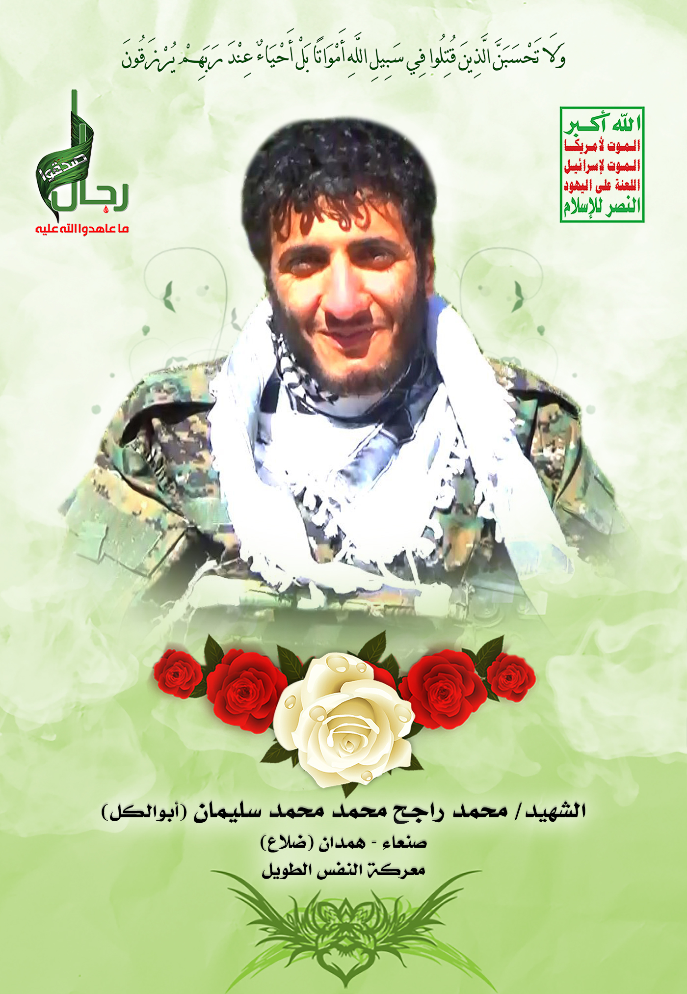 Actor محمد راجح محمد محمد سليمان Filmography الشهيد المجاهد: محمد راجح محمد محمد سليمان – أبو نكال المحافظة: صنعاء المديرية: همدان ضلاع – معركة النفس الطويل رقم الحافظة: 128960
