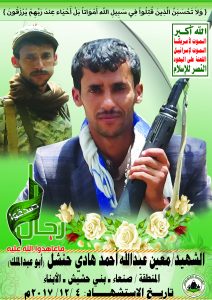 Actor معين عبدالله أحمد هادي حنشل Filmography الشهيد المجاهد: معين عبدالله أحمد هادي حنشل – أبو عبدالملك المحافظة: صنعاء المديرية: بني حشيش – الابناء معركة النفس الطويل رقم الحافظة: 129119