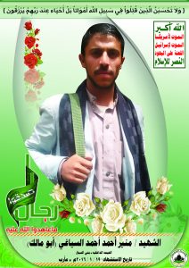 Actor منير أحمد أحمد السياغي Filmography الشهيد المجاهد: منير أحمد أحمد السياغي – أبو مالك المحافظة: صنعاء المديرية: الحيمةالخارجية بني السياغ – معركة النفس الطويل رقم الحافظة: 129126