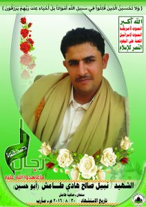 Actor نبيل صالح هادي علي طامش Filmography الشهيد المجاهد: نبيل صالح هادي علي طامش – أبو حسين المحافظة: صنعاء المديرية: سنحان الصافية – معركة النفس الطويل رقم الحافظة: 129161