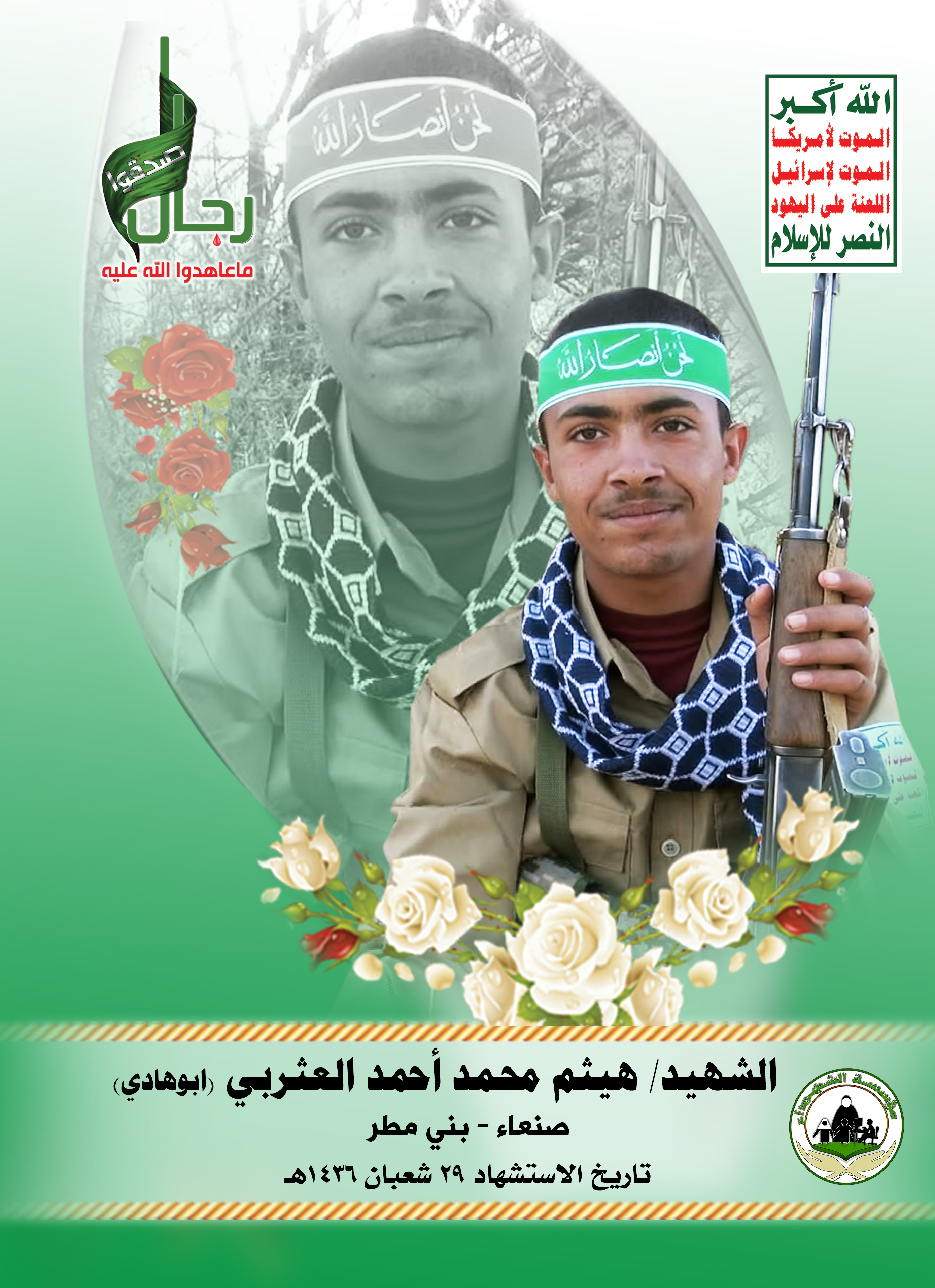 Actor هيثم محمد أحمد علي العثربي Filmography الشهيد المجاهد: هيثم محمد أحمد علي العثربي – أبو هادي المحافظة: صنعاء المديرية: بني مطر بني قيس – معركة النفس الطويل رقم الحافظة: 129215