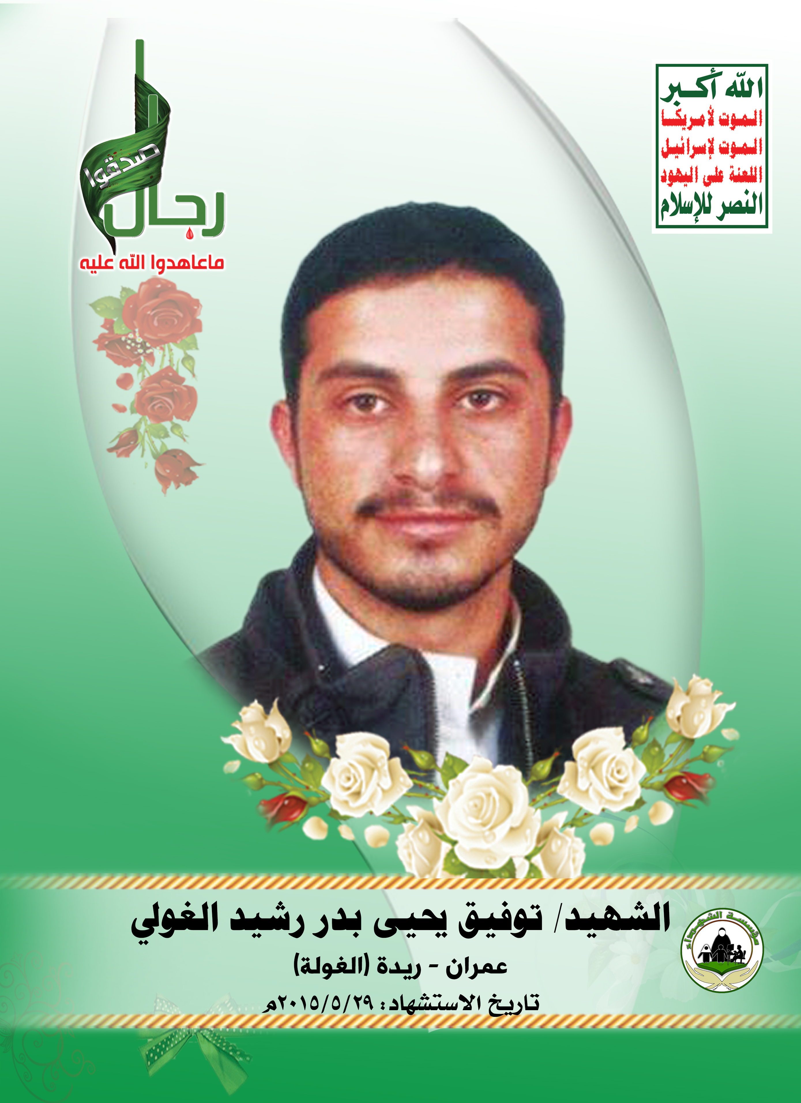 Actor توفيق يحيى بدر رشيد الغولي Filmography الشهيد المجاهد: توفيق يحيى بدر رشيد الغولي – المحافظة: عمران المديرية: ريدة غولة عجيب – معركة النفس الطويل رقم الحافظة: 129437