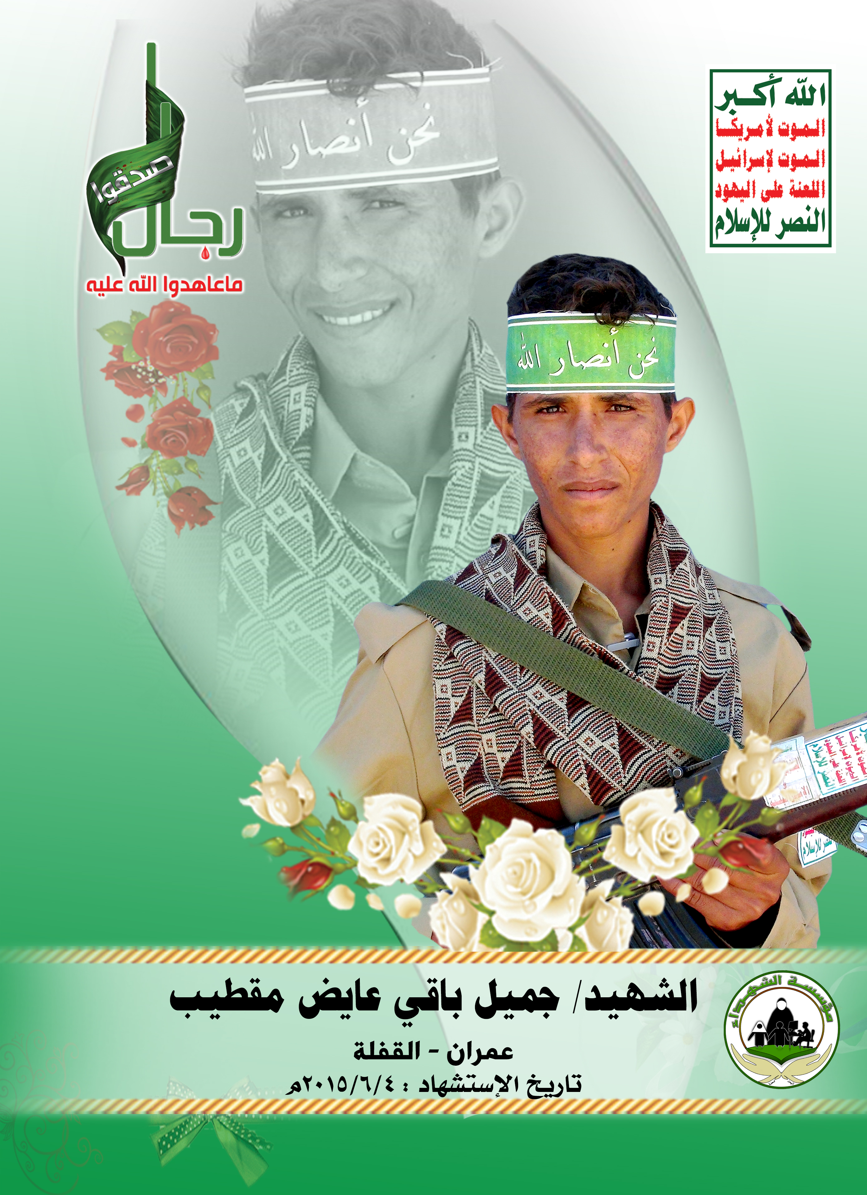 Actor جميل باقي عايض محمد مقطيب Filmography الشهيد المجاهد: جميل باقي عايض محمد مقطيب – المحافظة: عمران المديرية: القفلة المجزعة – معركة النفس الطويل رقم الحافظة: 129452