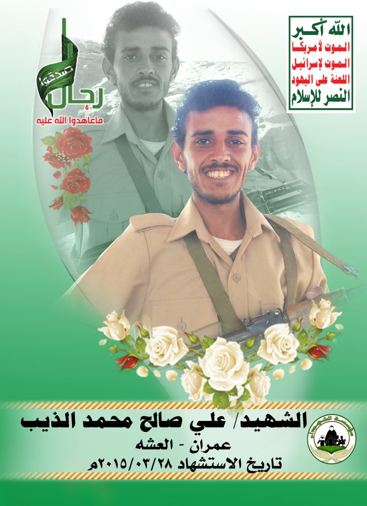 Actor علي صالح محمد حسين الذيب Filmography الشهيد المجاهد: علي صالح محمد حسين الذيب – المحافظة: عمران المديرية: العشة ذوخيران – معركة النفس الطويل رقم الحافظة: 129809