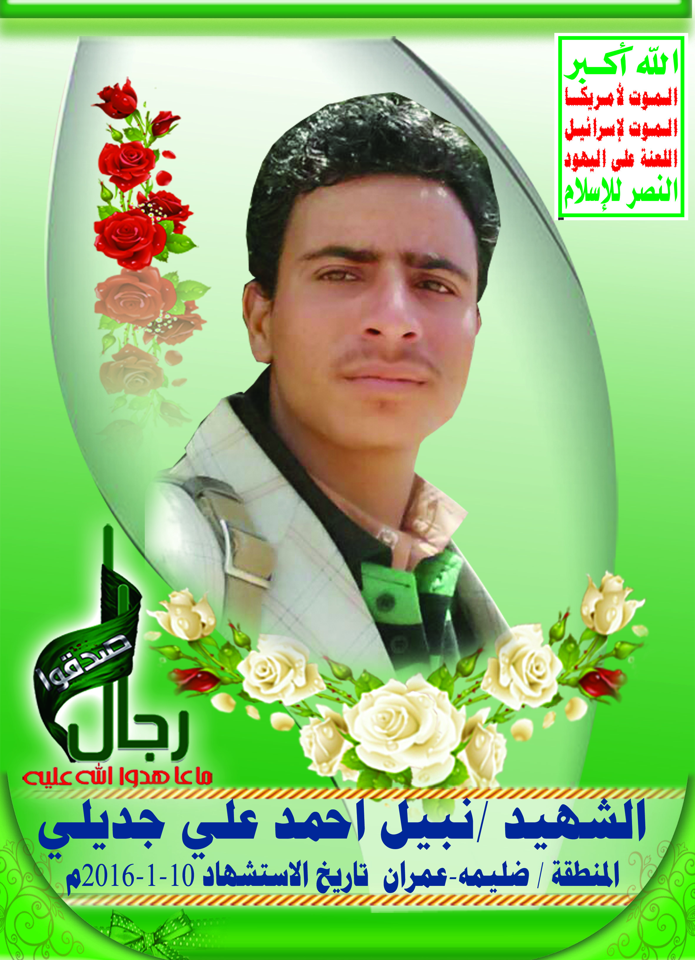 Actor نبيل أحمد علي أحمد جديلي Filmography الشهيد المجاهد: نبيل أحمد علي أحمد جديلي – أبو رعد المحافظة: عمران المديرية: ظليمة الدريب – معركة النفس الطويل رقم الحافظة: 130088