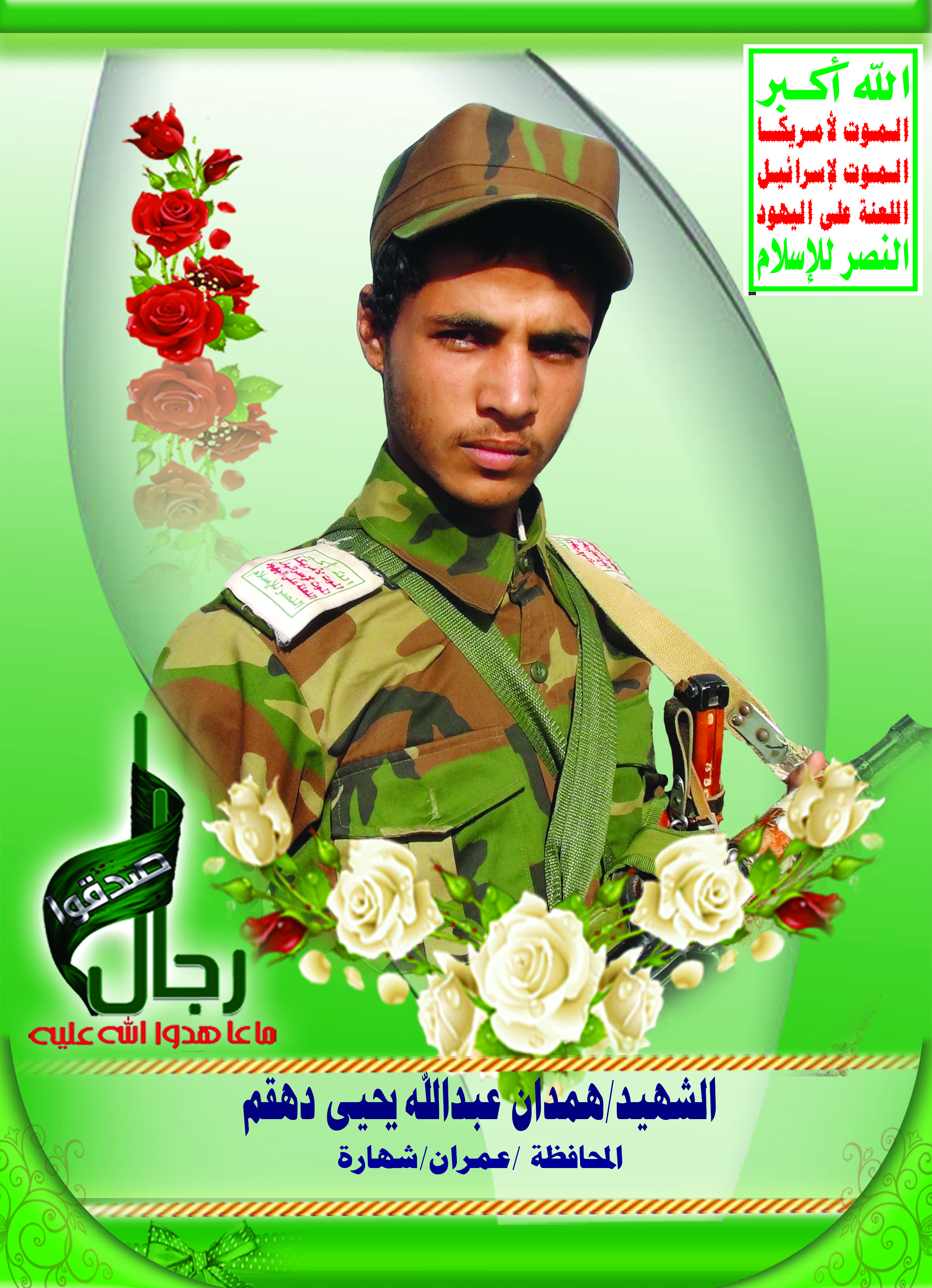 Actor همدان عبدالله يحيى دهقم Filmography الشهيد المجاهد: همدان عبدالله يحيى دهقم – المحافظة: عمران المديرية: شهارة ذري – معركة النفس الطويل رقم الحافظة: 130133
