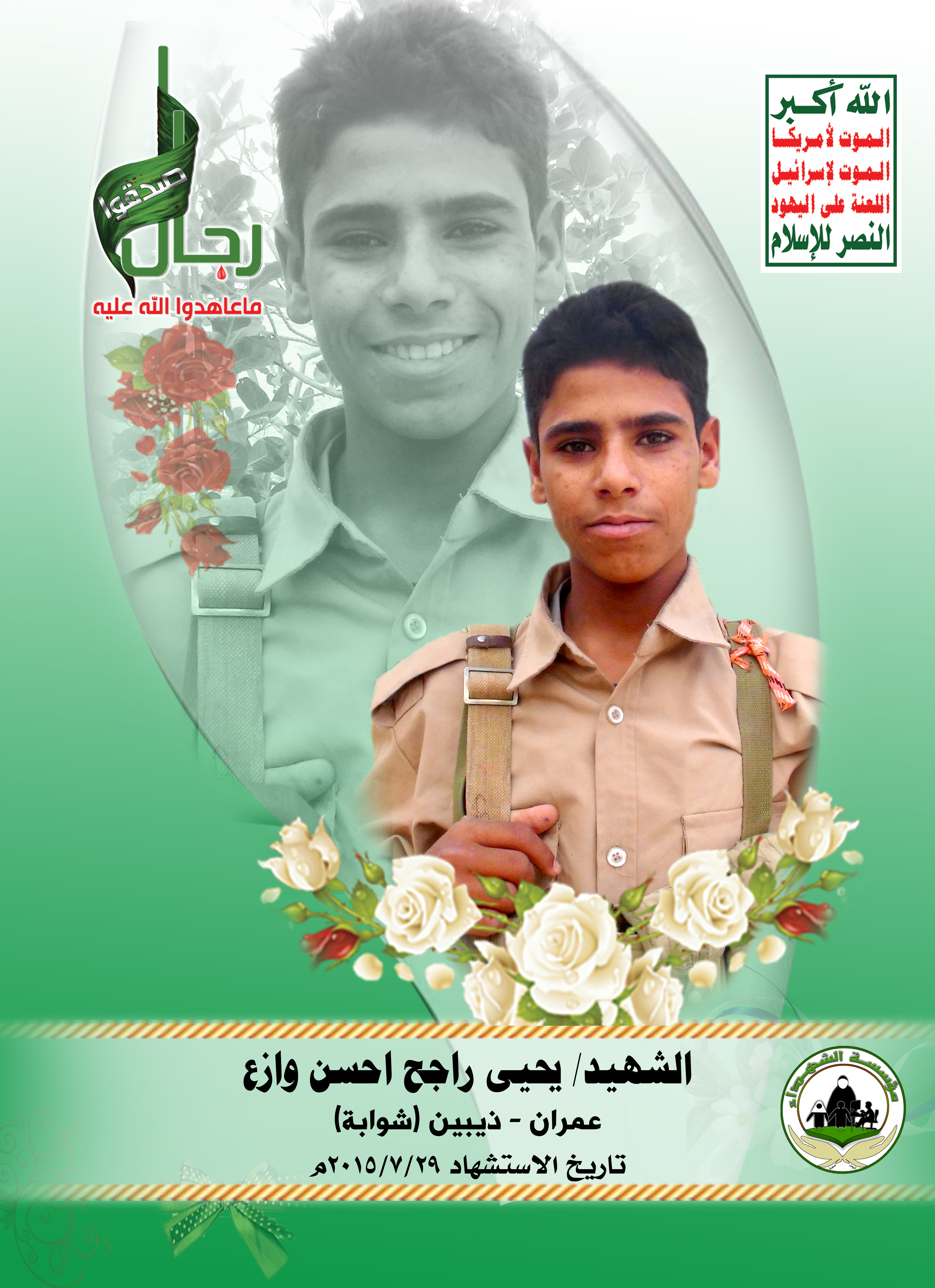 Actor يحيى راجح أحسن حسين وازع Filmography الشهيد المجاهد: يحيى راجح أحسن حسين وازع – أبو يحيى المحافظة: عمران المديرية: ذيبين – شوابة معركة النفس الطويل رقم الحافظة: 130160