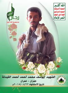 Actor يوسف محمد أحمد أحمد القيدله Filmography الشهيد المجاهد: يوسف محمد أحمد أحمد القيدله – أبو منتظر المحافظة: عمران المديرية: جبل يزيد – بيت القيدلة معركة النفس الطويل رقم الحافظة: 130183